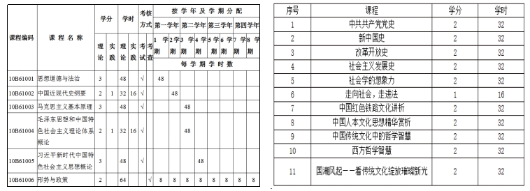 图为马克思主义学院开设课程