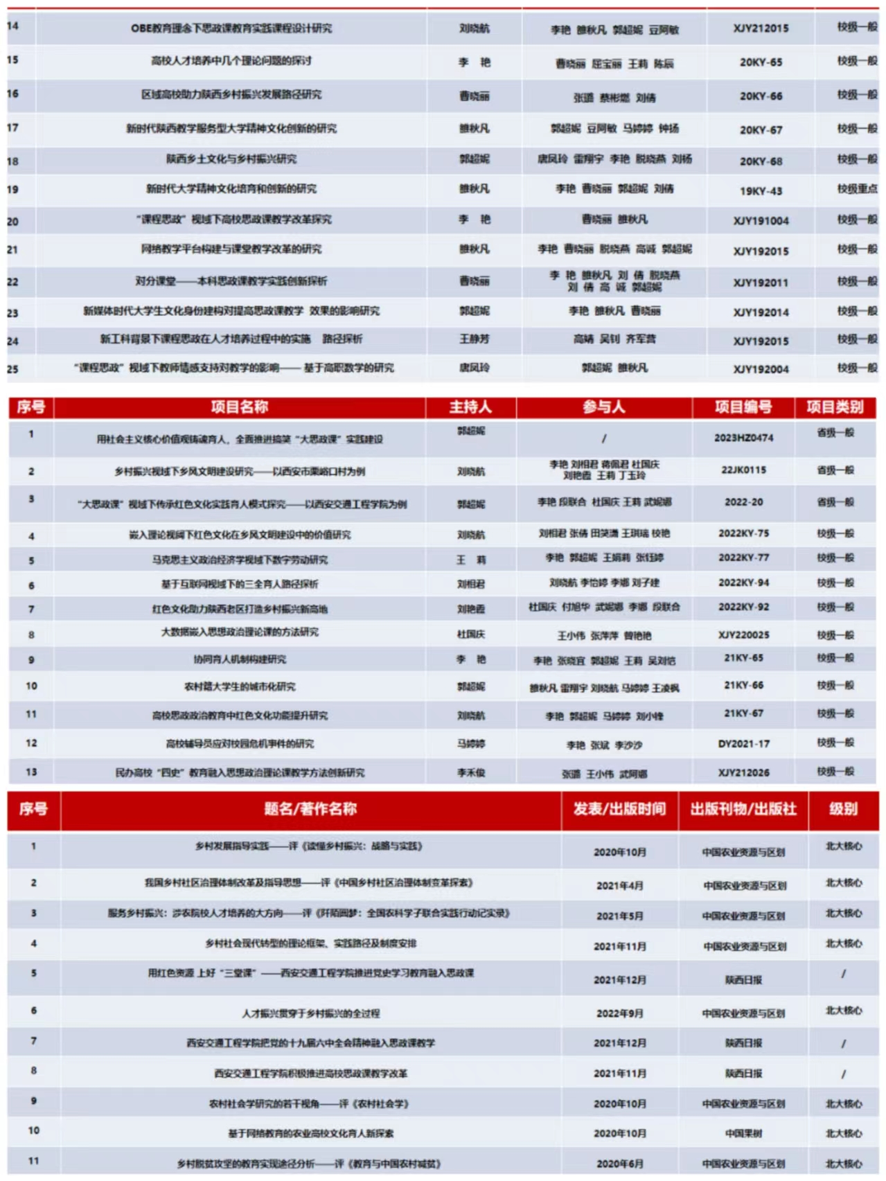 图为思政课教学工作的主要科研成果