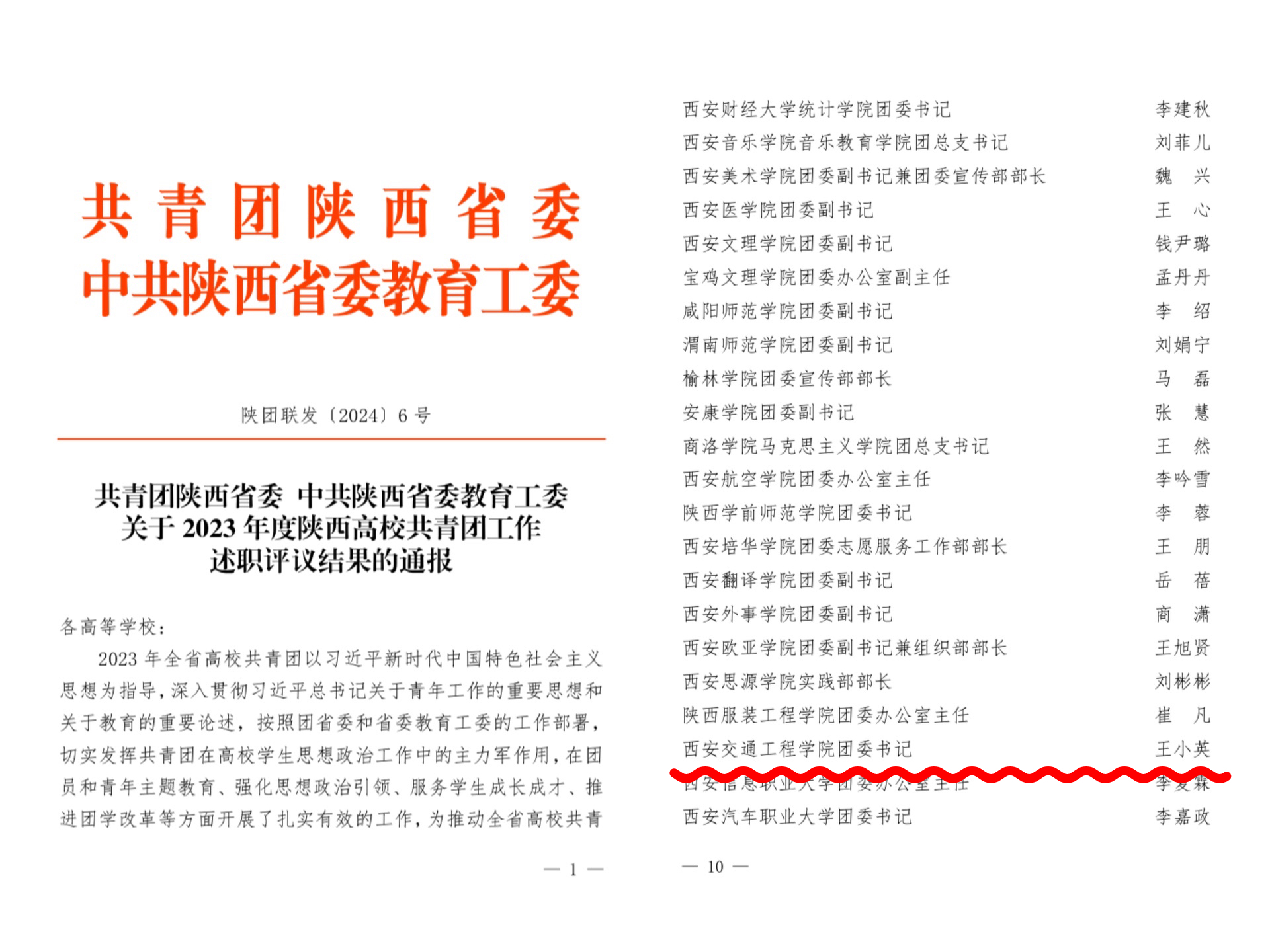 日前,共青团陕西省委、中共陕西省委教育工委联合印发《关于2023年度陕西高校共青团工作述职评议结果的通报》(陕团联发〔2024〕6号)文件,陕西省学生联合会印发《关于2023年度陕西学联学生会组织工作述职评议结果的通报》文件,beat365团委书记王小英同志获“陕西高校共青团工作先进个人”荣誉称号,校学生会执行主席刘子建同学获“陕西省学联学生会先进工作个人”荣誉称号。