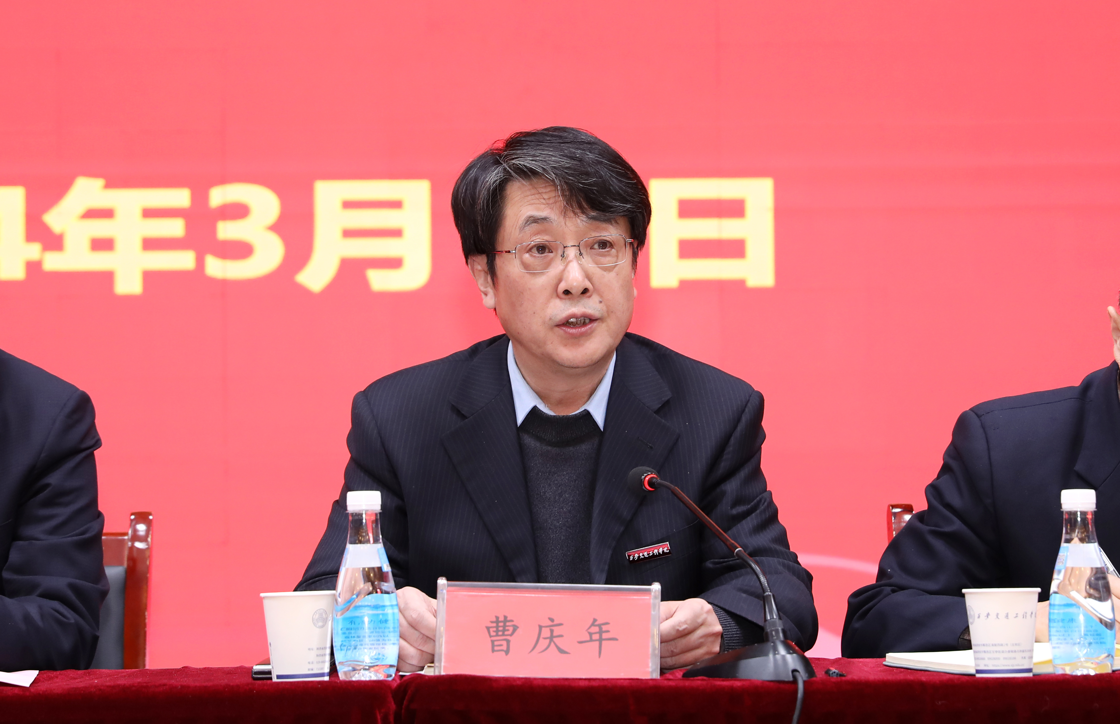 曹庆年校长部署了2024年学校工作,他指出,2024年工作基调是:以党建工作为引领,以立德树人为根本任务,不断强化教学中心地位,加强内涵建设,持续提高人才培养质量。2024年工作目标是:夯实基础、补齐短板、规范管理、指标达标。工作依据是学校第二次党代会精神、《“十四”五事业发展规划》、教学工作会议精神、学生工作会议精神、《评估整改工作方案》。围绕2024年工作目标,曹庆年校长强调了“怎么做”的问题,一是抓好党建工作。要把党建工作与师德师风建设相结合、与人才培养相结合、与学风建设相结合。二是抓好教学与科研工作。要全力稳定正常的教学秩序;贯彻OBE理念,开展专业认证试点工作,持续加强专业建设;建立和完善教师工作业绩评价体系、教师教学评价体系、学生学习评价体系;建立管建评一体系体系;扎实做好毕业设计;坚持学科专业一体化建设,不断加强科研工作,鼓励教师围绕轨道交通特色凝练自己的研究方向;以产业学院建设为抓手,扎实做好产教融合工作;持续抓好课程思政建设,围绕专业做好《课程思政工作指南》。三是抓好学生工作和就业工作。学生工作方面,要坚持教育、服务、管理的理念,不断加强学风建设,构建学生工作评价体系,开展量化考核;严格落实班主任工作制度;在学风建设中充分发挥班干部、党员、积极分子的作用,指导学生自我管理、自我服务;要以学科竞赛、大学生创新创业项目及社团活动为抓手,结合30周年校庆开展丰富多彩的校园文化活动。就业工作方面,要落实就业工作“一把手”工程,多举办线上线下招聘会并鼓励学生积极参加;认真落实毕业生就业去向,确保数据详实准确可靠;要高度关注困难学生就业问题;全力以赴做好访企拓岗工作。四是抓好保障工作。队伍保障方面,要继续加大教师招聘力度;加强教师培训,提高双师型教师比例;做好优秀教师的选拔工作;配齐配强关键部门的教学行政和专业技术岗位人员。财务保障方面,要尽快完成内控制度建设;修订财务报账相关程序,确保合法法规和简便;高度关注教学日常运行经费支出;加强培训,增强教学单位对教学日常经费17项内容的理解。大后勤保障方面,要不断推进物资采购和建设项目力度,主动与院部对接,提高效率,保证质量;要建立定期巡查制度,后勤保障处重点巡查教学设施、饮食卫生;保卫处、教务处定期巡查实验室安全,主动发现问题,整改问题,保障教学状态良好,教学秩序稳定。