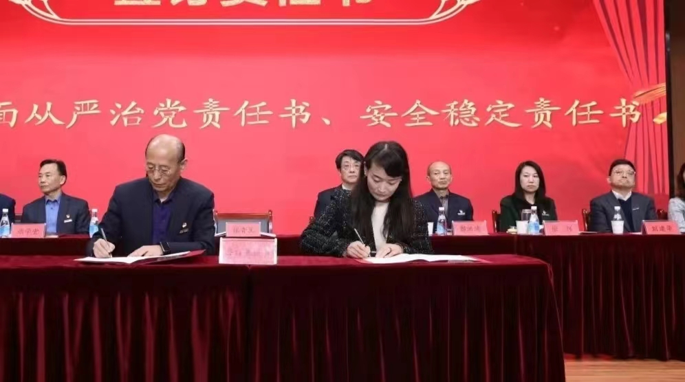 第二阶段会议由李萍书记主持,曹庆年校长宣读了《关于表彰2023年度先进单位 、优秀教师、优秀教育工作者、优秀处级干部的决定》,与会领导为获奖单位和个人颁奖;李萍书记分别与现代技术学院党委、公共课部党总支、机关党委签订了全面从严治党责任书;张晋生理事长分别与学生处、保卫处、人文与管理学院签订了安全稳定责任书。
