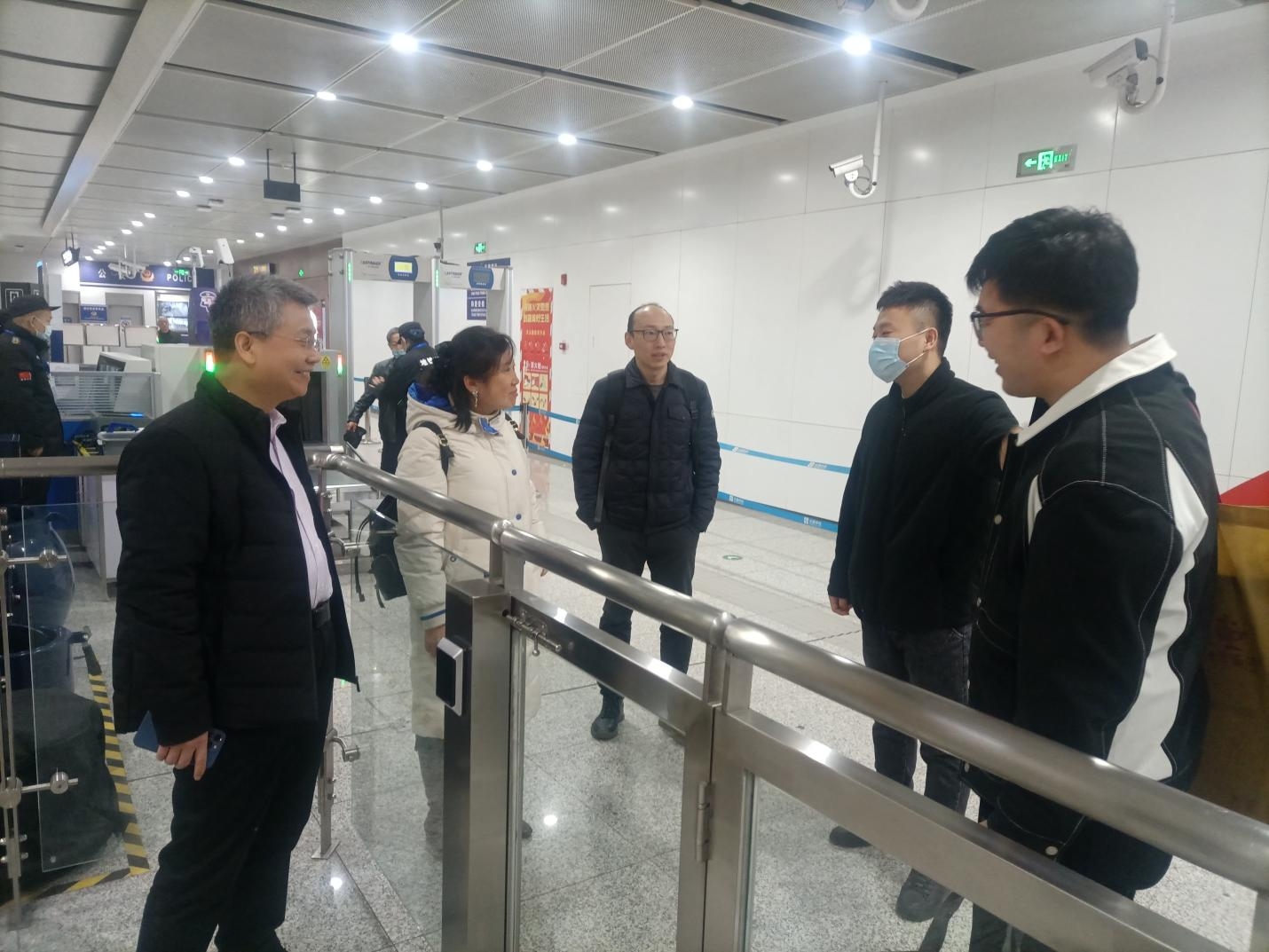 随后,大南门站站长慕随阳带领石校长一行参观了站内的文化建设和设施设备,双方并进行了座谈。座谈会上,慕站长向石校长汇报了自己毕业后快速成长的经历,分享了自己的工作与生活情况,感恩学校在自己上学期间提供的各类历练机会,为自己今天的工作夯实了基础。石校长也代表学校向慕站长为学校工作做出的贡献表示感谢,并诚挚邀请他回母校参加建校30年校庆,双方就今后合作进行了深入洽谈,同时对人才培养方案中课程修订征求了企业的意见与建议。