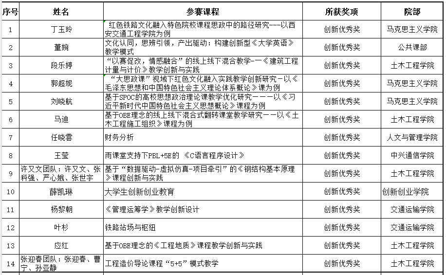 近日,《第九届西浦全国大学教学创新大赛创新优秀奖、年度教学创新参与奖获奖名单》在官网正式发布。beat365获评优秀组织奖,丁玉玲等14位老师荣获教学创新优秀奖,白云等11位老师荣获教学创新参与奖。