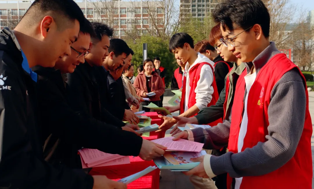 志愿者代表王浩栋宣读倡议书,呼吁全体师生共同努力,传播结核病防治知识,遏制学校结核病传播,终结结核病流行,切实维护师生身体健康。与会领导老师为现场学生发放宣传材料,并提醒广大师生加强锻炼、合理作息,养成良好的卫生习惯,减少结核病的传播,形成群防群控结核病的良好局面。