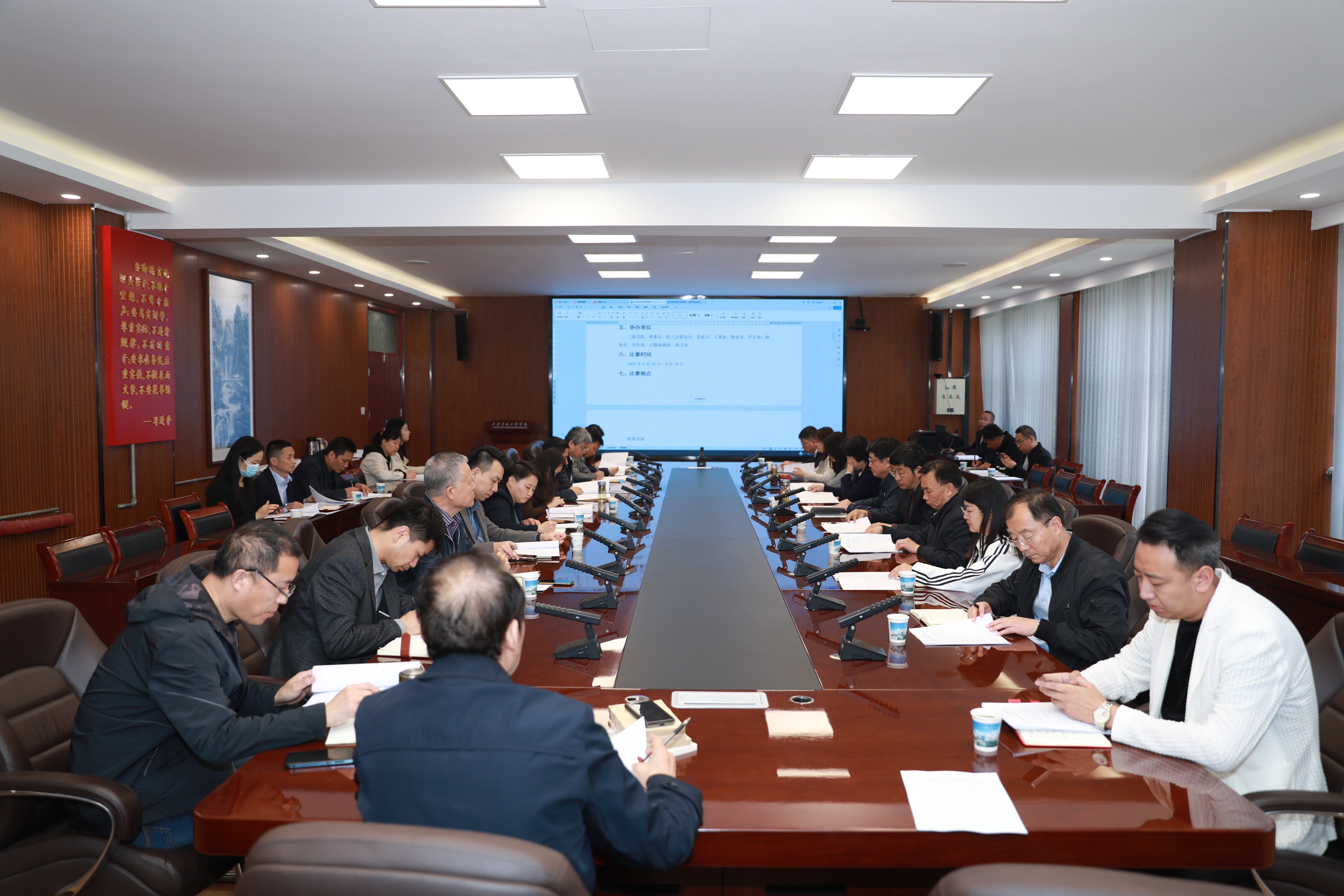曹庆年校长对运动会暨体育文化艺术节前期筹备工作予以肯定,他指出,一年一度的运动会和体育文化艺术节,既是对学校体育工作水平的一次集中检阅,也是全面强化体育育人功能,营造良好育人氛围、展现师生精神风貌的一次全校性盛会。各单位要高度重视,明确工作目标、细化工作任务、落实工作责任;精心准备,强化沟通协调;要守住安全底线,制定完善的各项安全应急预案,切实保障运动场地安全、人身安全,饮食安全,确保运动会期间赛事安全和校园稳定安全。