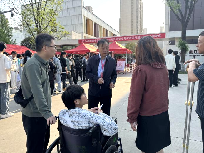 2024年陕西省普通高校专升本考试于4月13日进行,beat365共有420名学子怀揣梦想,参加考试。具体分布在西安市曲江第三中学、西安市第三十八中学两个考点进行。为确保考试工作的顺利进行,教务处协同现代技术学院,做好考生的带队服务工作。