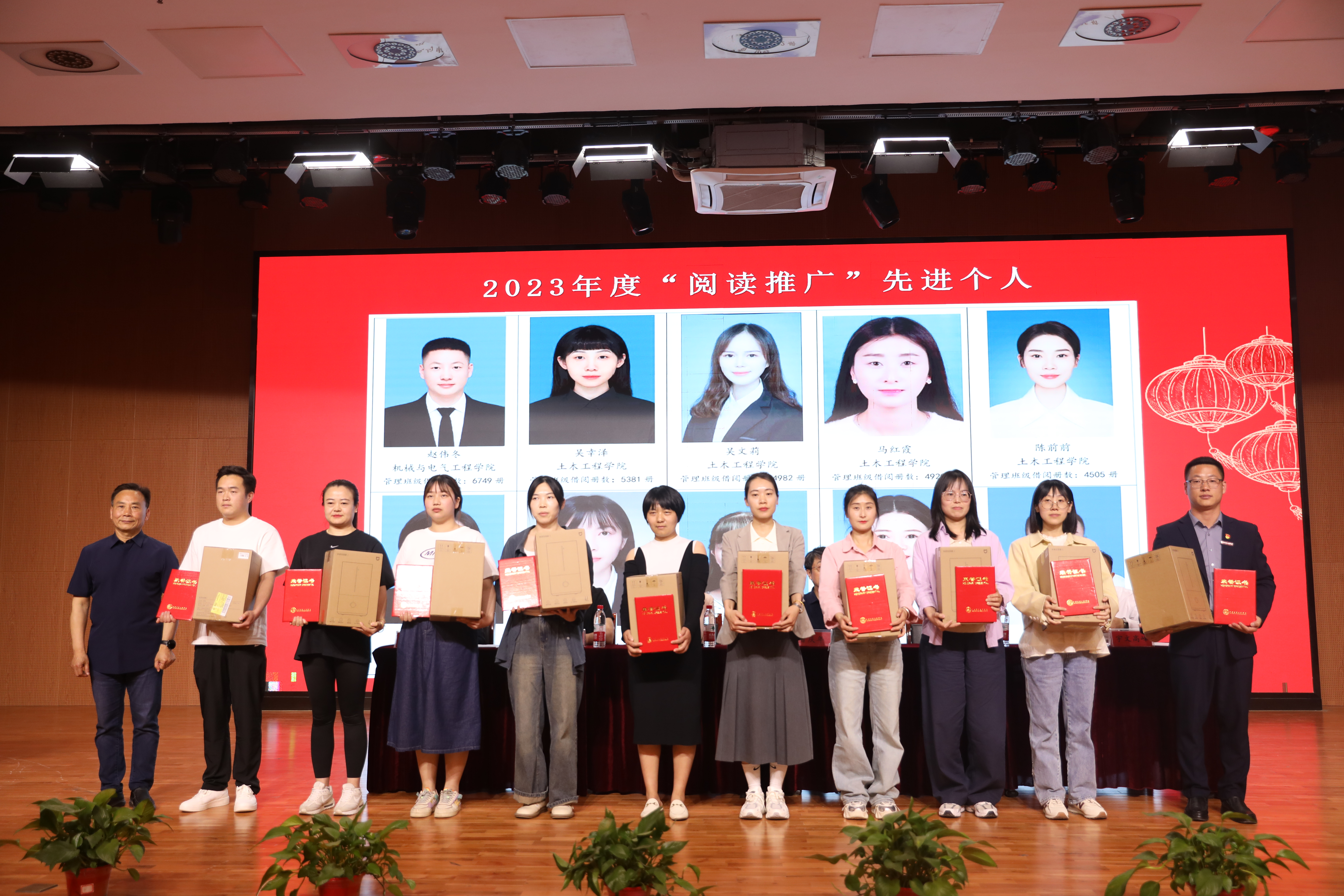 为了进一步促进beat365学风建设再上新台阶,引导和鼓励学生多读书,读好书,进一步提高图书馆文献资源的利用率,营造良好的书香校园氛围。4月23日,在第29个“世界读书日”,beat365在学术报告厅组织召开了2023年度图书馆优秀读者表彰大会暨2024年“书香交院”启动仪式。校长曹庆年教授、副校长张学堂教授、党委副书记张庆生教授、图书馆馆长宇文高峰编审、学生处钱穆萨处长、各二级学院党委书记及学生代表出席了此次会议。图书馆副馆长黄晓燕主持此次活动。