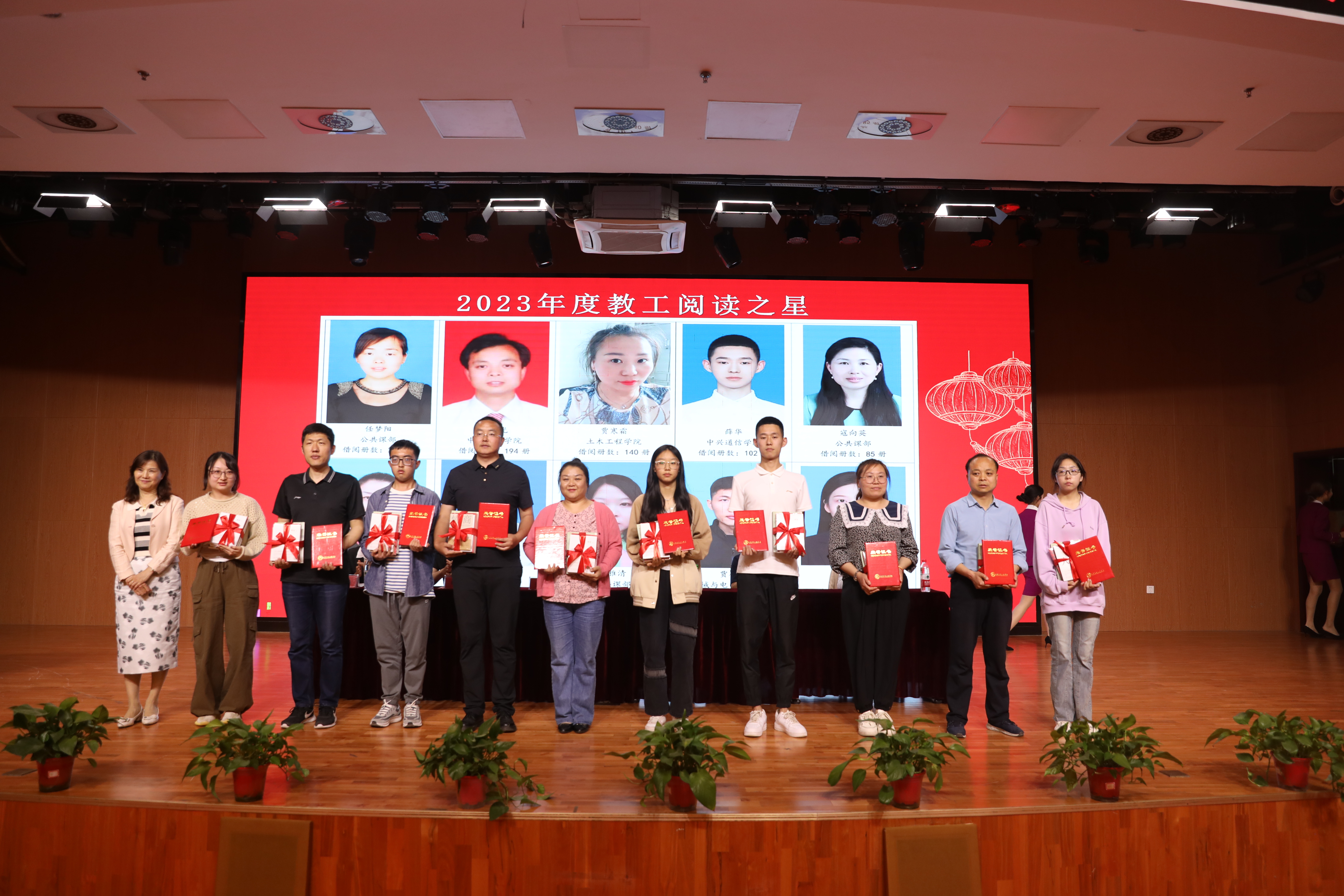 副校长张学堂宣读了关于beat365在线唯一官网关于表彰2023年度优秀读者的决定及学生“阅读之星”、教工“阅读之星”、学生“专业图书阅读之星”、“图书馆达人”、“教工阅读之星”“教工志愿者服务先进个人”、“阅读推广个人及单位”等获奖者名单,与会领导为受表彰的单位和个人颁发了奖品、证书和奖牌。随后,机械与电气工程学院机器人工程2101班丁光欣同学代表学生获奖者发言,分享了自己的读书心得;接着,阅读推广先进个人代表、机械与电气工程学院辅导员赵伟冬老师交流了自己组织、促进阅读推广工作的经验和一些做法。