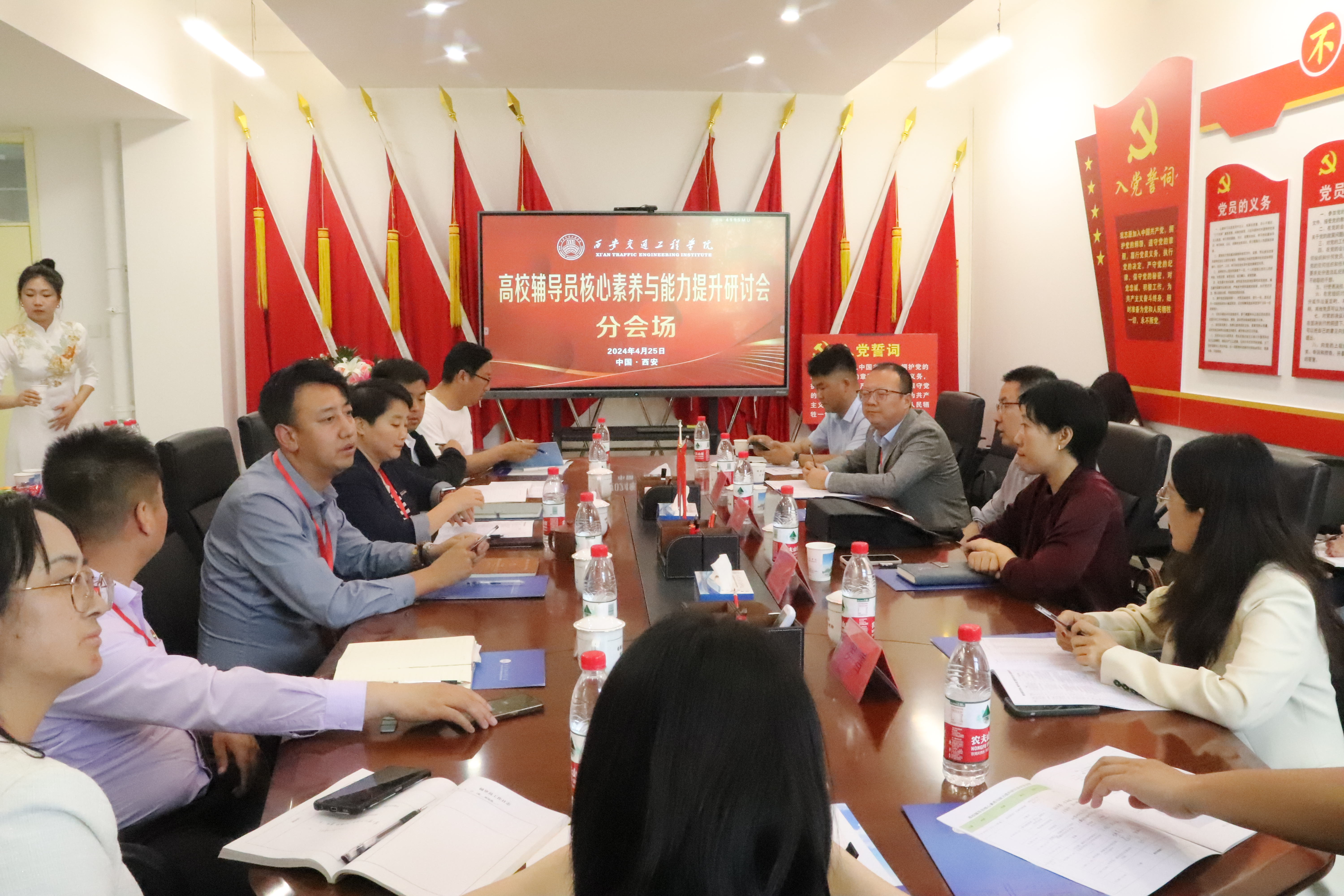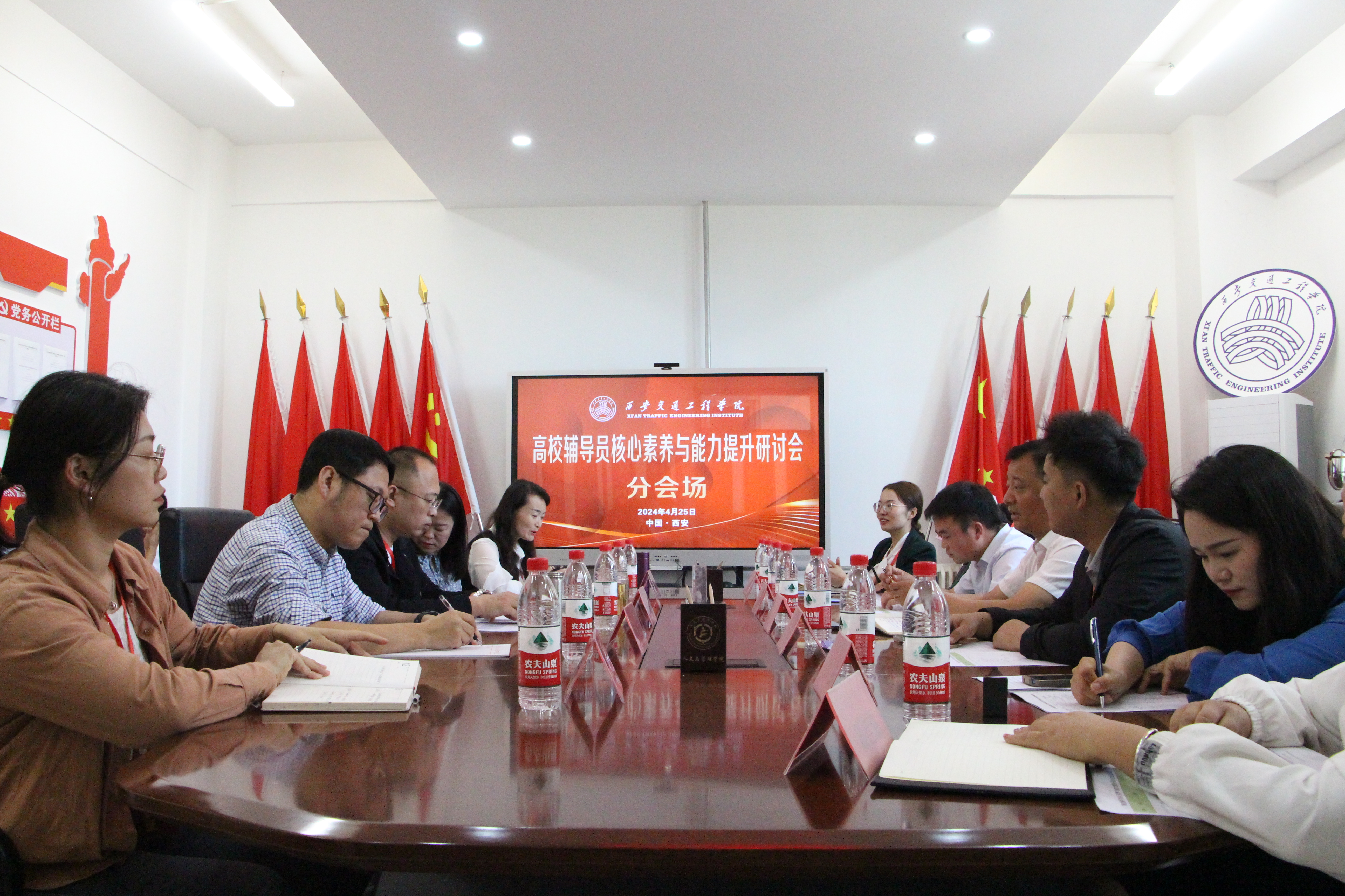 西安石油大学、西京学院、陕西国际商贸学院、陕西国防工业职业技术学院代表和中兴通信学院、土木工程学院聆听了《浅谈院(系)学生工作做法与特色》、《新辅导员如何让自己有竞争力》、《从学生核心素养探寻辅导员赋能成长路径》、《辅导员核心素养建设》四个报告。共同探讨了学生工作做法与特色教育领域的应用,并分享了各自在教学实践中的心得和体会。