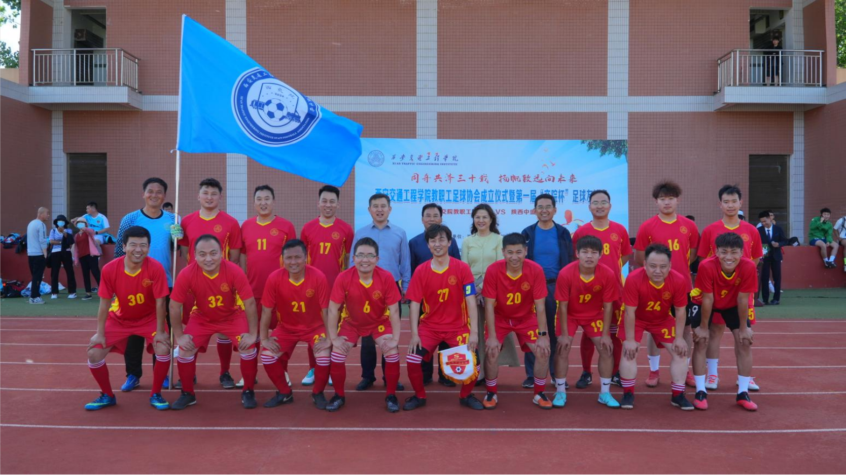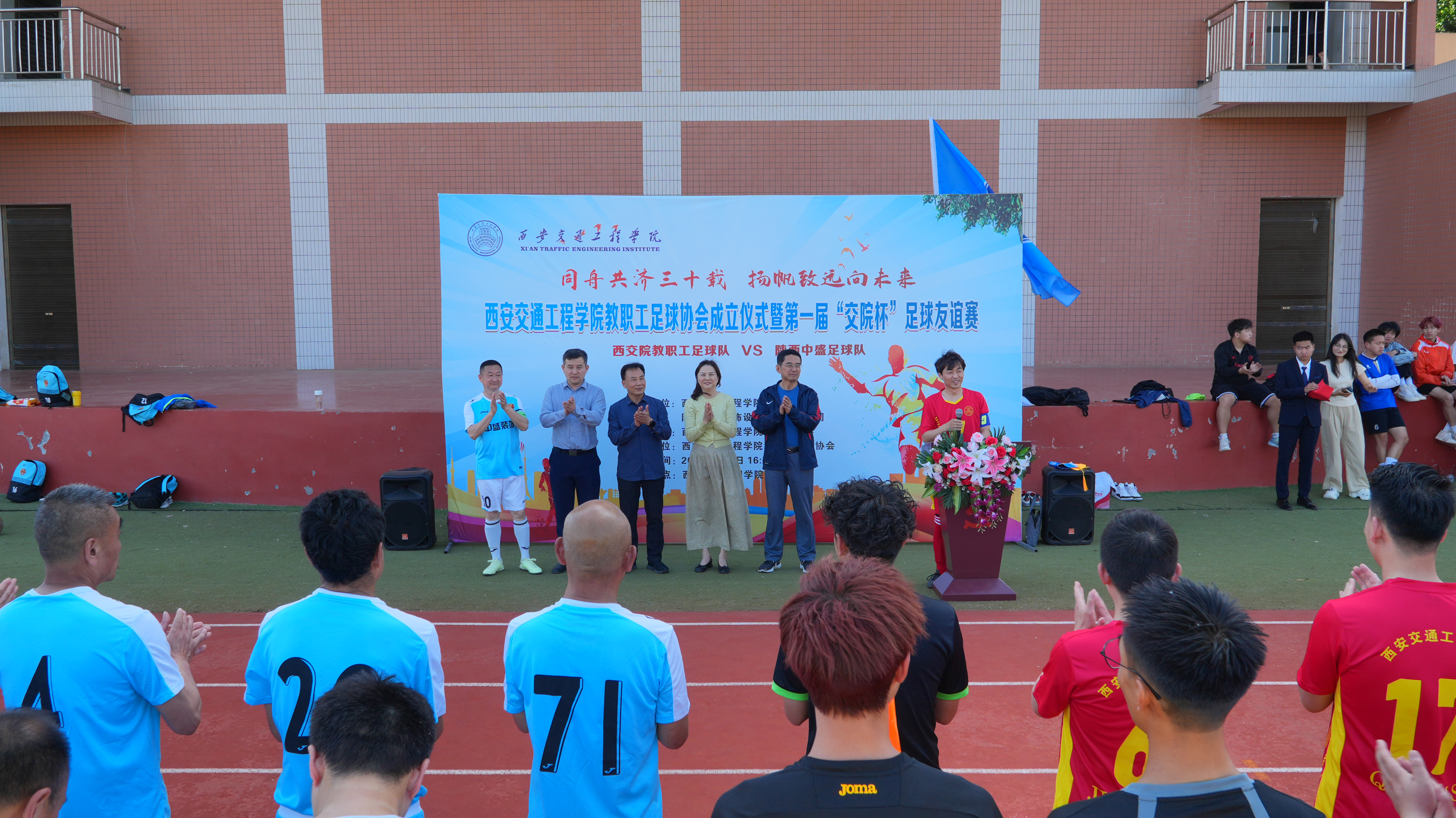 为庆祝学校建校30周年的辉煌成就,发扬团结协作、奋勇争先的精神,以体育为纽带,促进校企双方的交流与合作。5月9日,学校教职工足球协会成立仪式暨第一届“交院杯”校企足球友谊赛在学校体育场隆重举行。陕西中盛装饰设计工程有限公司总经理高亮,学校副校长张学堂、副校长赵征,学校党委副书记、纪委书记、工会主席张庆生出席成立仪式并为教职工足球协会授旗。学校教职工足球协会副会长张磊主持成立仪式。