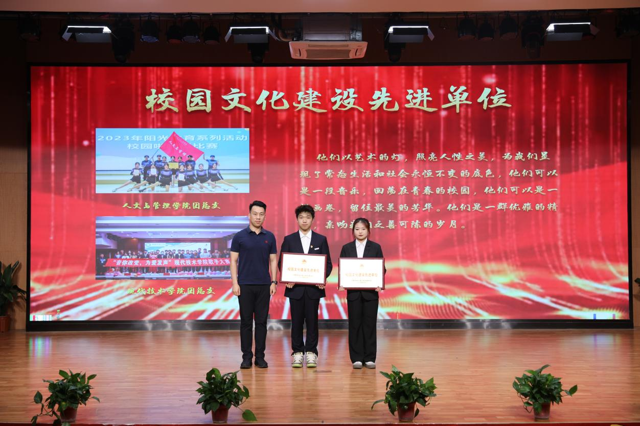 校长曹庆年教授宣读了《共青团beat365在线唯一官网委员会关于2023-2024学年五四表彰的决定》。在场领导们分别为获奖代表们颁发奖项并送上祝福。