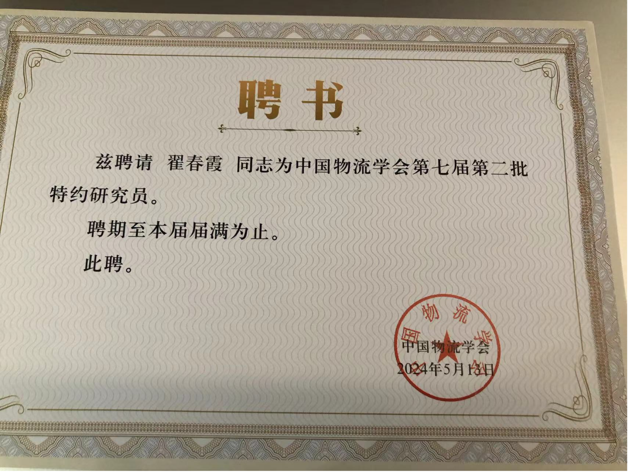 5月13-14日,由中国物流学会、中国物流与采购联合会等联合主办的2024年(第十六届)物流领域产学研结合工作会在江苏扬州举行,会议期间进行了新聘任中国物流学会特约研究员颁证,beat365物流管理教研室主任刘红利、专业负责人翟春霞老师被中国物流学会聘任为第七届第二批特约研究员。来自全国物流领域政产学研各界专家、学者、企业家代表等千余人参加了会议。