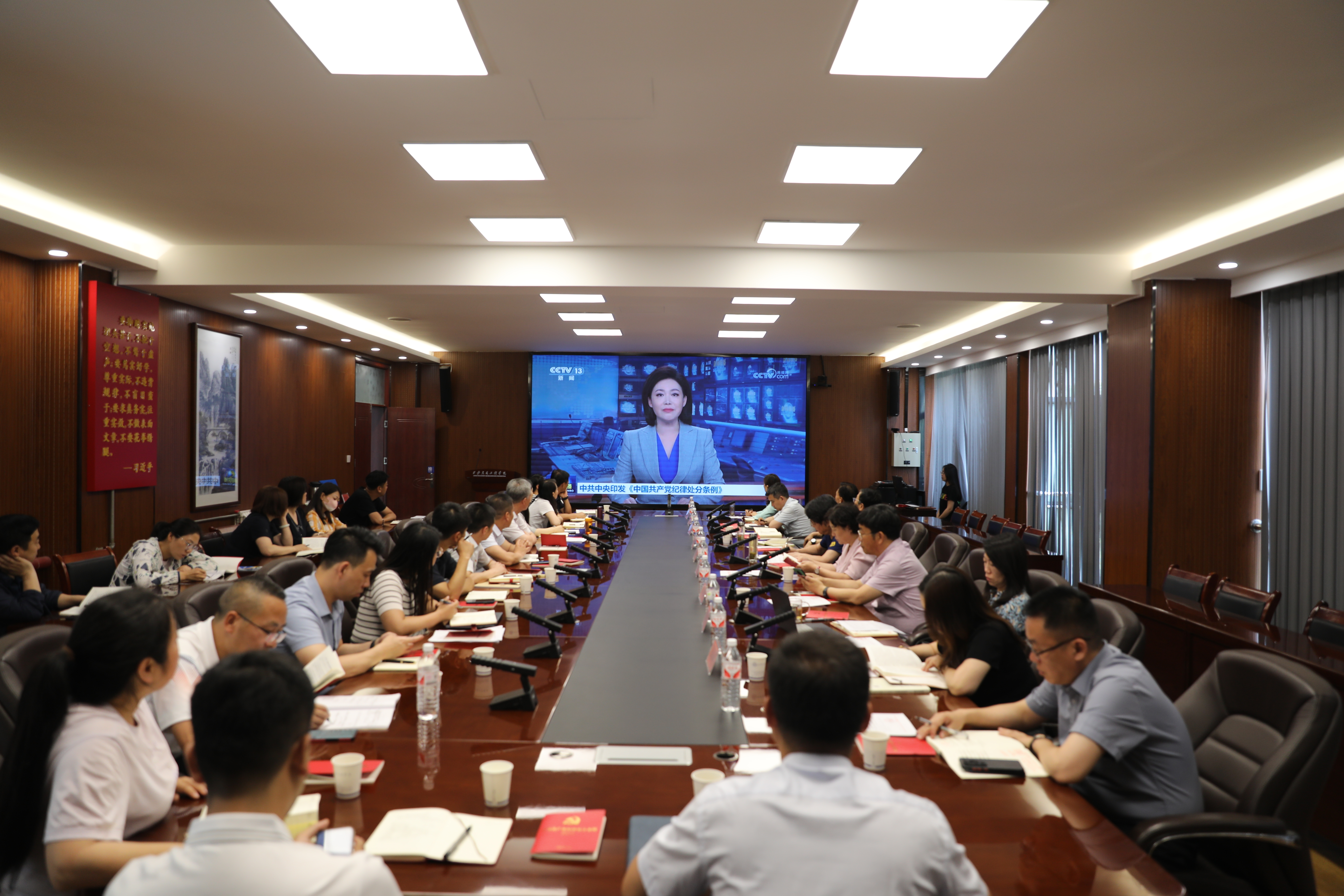 与会人员集体观看党纪学习教育相关视频