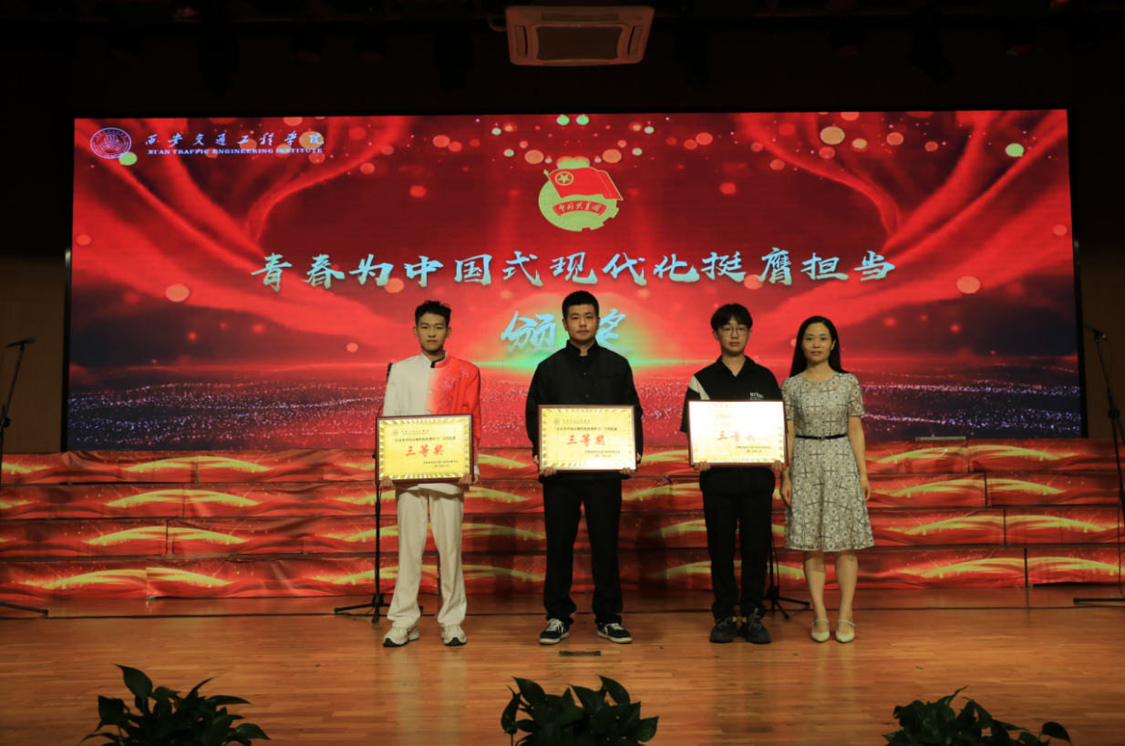 经评审团评分,人文与管理学院一队获得一等奖,土木与铁道工程学院、中兴通信学院获得二等奖,交通运输学院、机械与电气工程学院一队、现代技术学院二队获得三等奖,校团委、校工会合唱团获得最佳演绎奖,现代技术学院一队、机械与电气工程学院二队、人文与管理学院二队获得优秀组织奖,王星辰、王浩栋、戴西尧等5名同学获得最佳指挥奖,在场的校领导为获奖集体和个人颁奖。