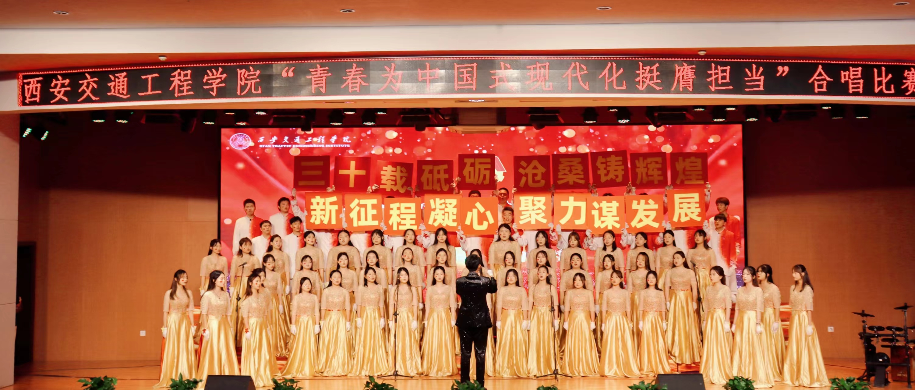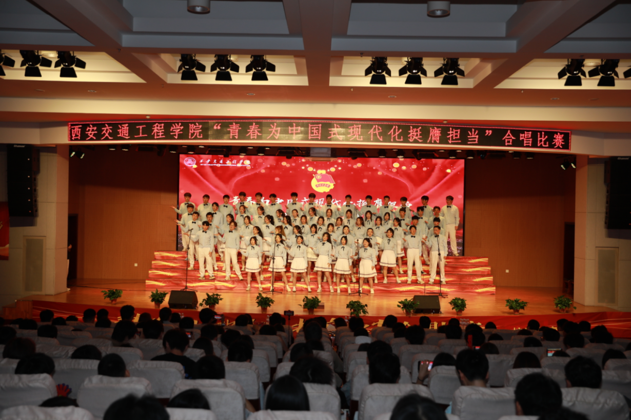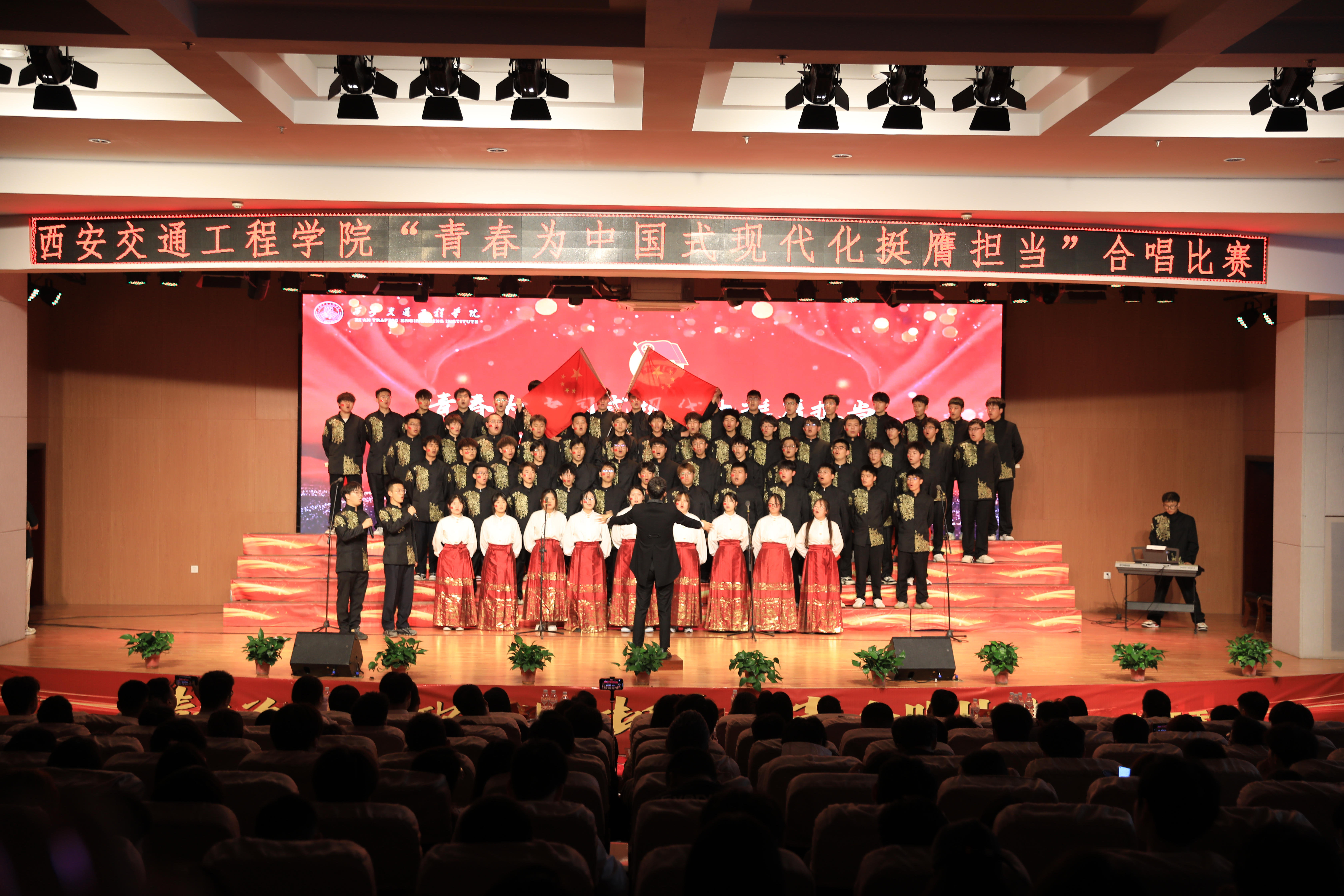 各参赛队伍以朝气蓬勃、昂扬向上的精神面貌,用热血沸腾、高昂嘹亮的歌声,唱出了对祖国深情的告白、对中国共产党的亲切热爱,对母校的深深眷恋。《有我》通过激昂的旋律和深情的歌词,表达了对青年一代的期许和激励,鼓励他们勇敢地追求梦想,为祖国的繁荣富强贡献自己的力量。《军民大生产》慷慨激昂的歌词、奋进明快的节奏、雄壮豪迈的曲调抒发出军民共同热火朝天的劳动,抒发出对祖国欣欣向荣的热爱。《没有共产党就没有新中国》旋律深情而庄重,歌词简洁而有力,合唱队员们用真挚的情感,唱出了对共产党的感激与敬仰。《国家》《大中国》道尽了青年学子对党和国家的浓浓深情,鼓励着青年为中华民族的伟大复兴而自强;《东方红》《紫荆花盛开》唱出青年学子坚定理想、百折不挠的奋斗精神,展现了青年学子的蓬勃朝气,体现了当代大学生勇立潮头、迎难而上的信心;展现了当代青年应有的责任与担当,以及对美好明天的憧憬。合唱此赛在人文与管理学院合唱团的歌声中落下帷幕,他们演唱的《如愿》《灯火里的中国》不仅是一首优美的歌曲,更是一个时代的记忆和情感的载体。它用音乐的方式,将两代人的奋斗与传承、亲情与家国情怀紧密地联系在一起,成为了一首能够跨越时间和空间,触动人心深处的经典之作。11支合唱队伍着装统一,合唱表演形式多样,精彩纷呈。活动现场,交院青年用嘹亮的歌声表达着对对革命历史和先烈的怀念与崇敬、表现了交院青年积极向上的精神风貌以及对美好生活的向往和追求。