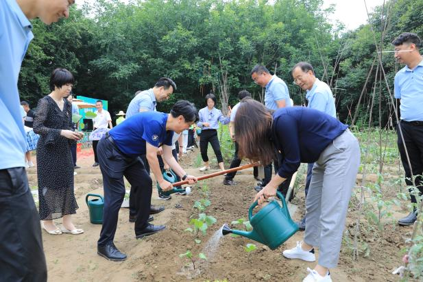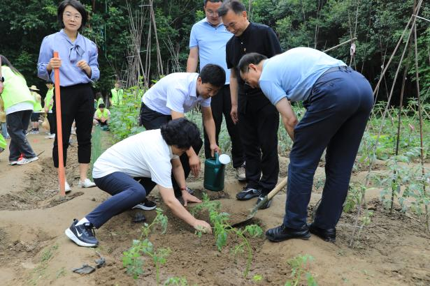 仪式结束后,曹庆年校长、李萍书记等领导深入基地,亲自除草、埋苗,脸上洋溢出幸福的笑容,对劳动基地的现有成就,表示高度肯定。同学们,也积极参与劳动,让辛勤的汗水播散在希望的土地上。