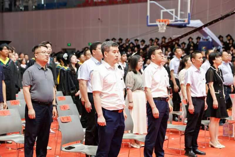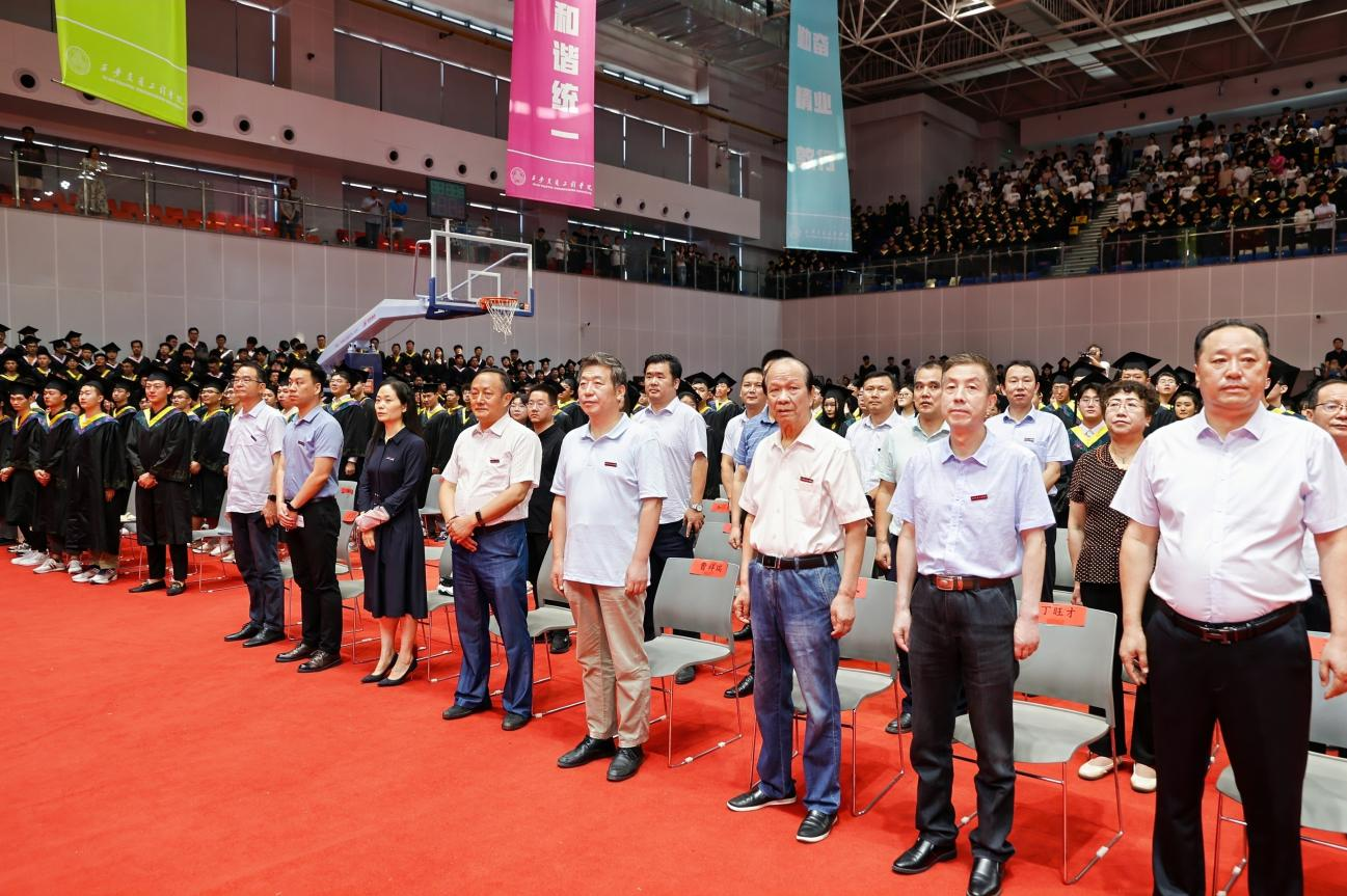 典礼上,毕业生代表为2024届全体毕业生现场献歌,演唱歌曲《那些年》、《和你一样》;一声声附唱含蓄道出对母校、对青春所有未能出口的怀念,深深感染着现场所有与会人员,在歌声中毕业生们手捧鲜花走上主席台,为学位评定委员会全体成员献花并深情拥抱;随后全体毕业生右拳握起,集体宣誓,在铮铮誓言声中下定决心,用智慧和才华肩负起民族复兴的使命,用青春和热血承担起国家富强的责任。