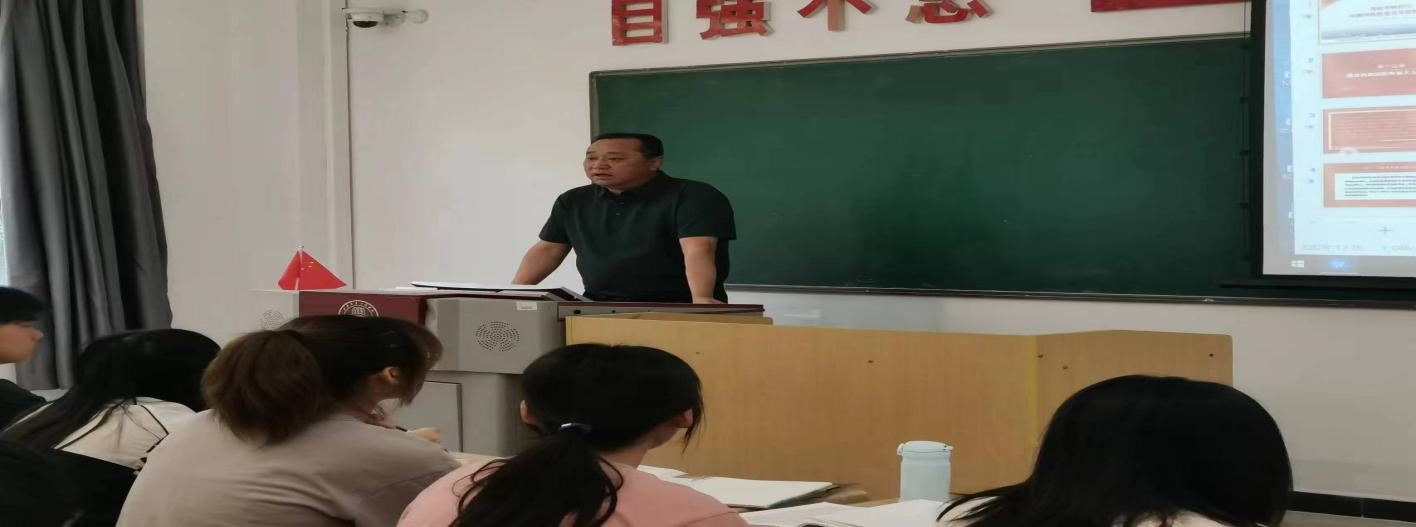 学校党委副书记、纪委书记、工会主席张庆生为学生讲思政课