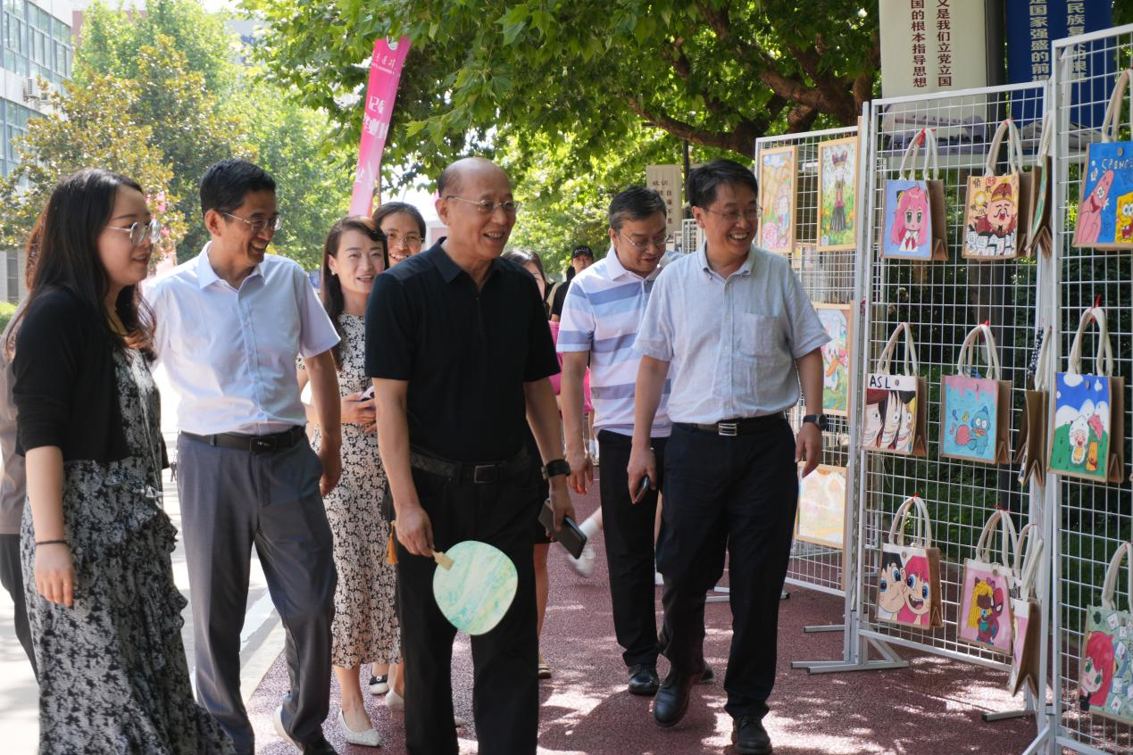 美术基础展区则自豪地彰显了学生们深厚的艺术根基,透过了他们细腻的笔触和敏锐的审美视角,展现了对美学的独特领悟与个性化阐释。刮画艺术在展区中熠熠生辉,每一刮痕都记录着创作者的心跳与灵感;儿童画板块则以纯真无邪的眼光洞察世界。张晋生理事长等一行领导欣赏了《二十四节气》为灵感源泉的纸浆画系列,该系列巧妙地将自然界的细微元素与精湛的手工艺融为一体,每一环节无不透露出匠人对于自然和谐共存理念的深刻理解和尊重。