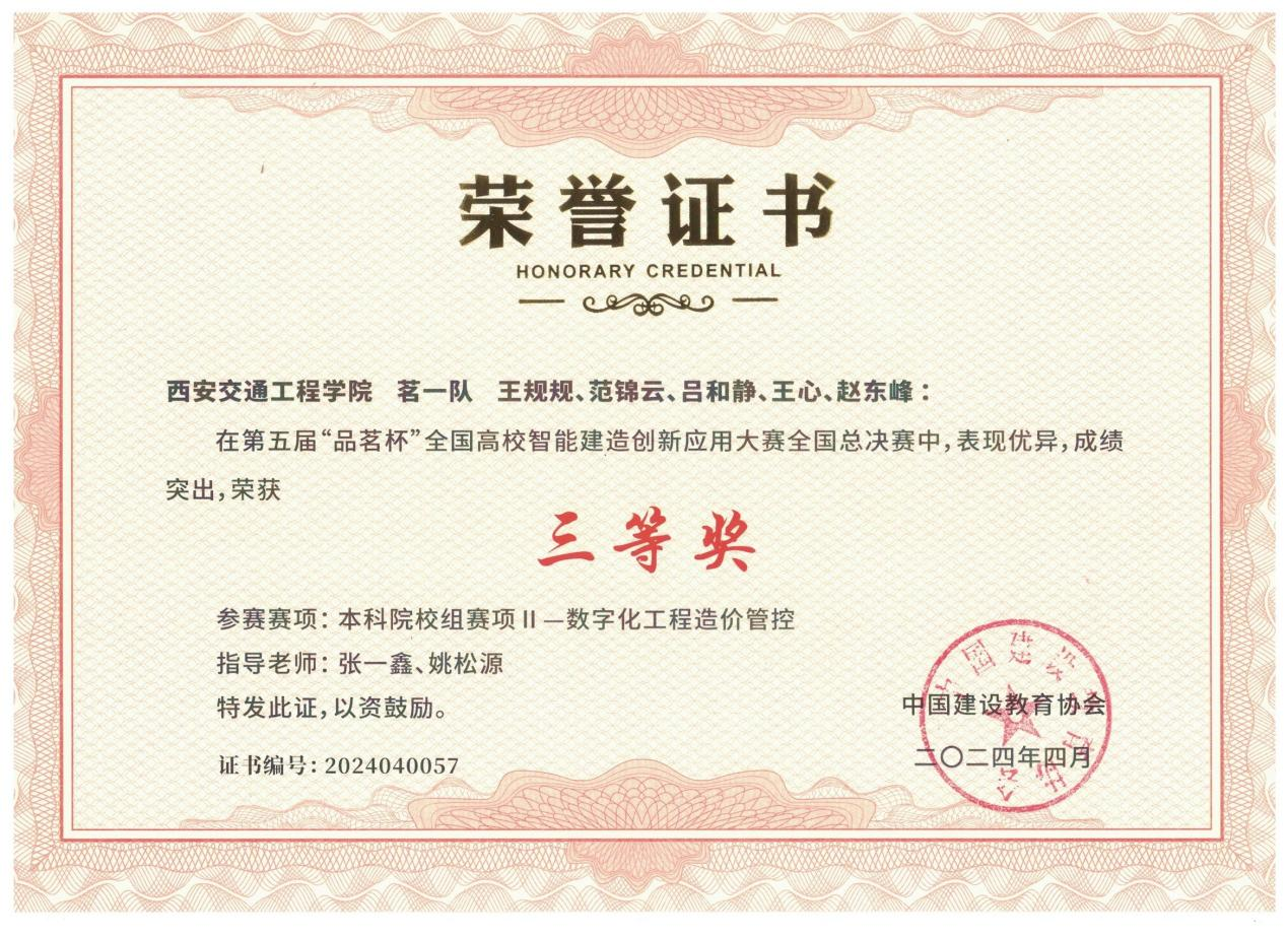 beat365学生在第五届“品茗杯”全国高校智能建造创新应用大赛中荣获三等奖