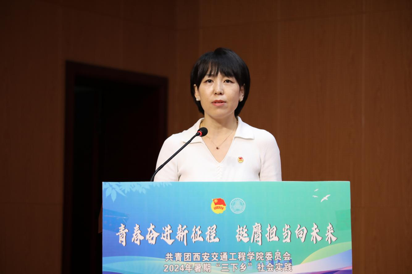 仪式在激昂的国歌声中拉开帷幕。校团委书记王小英从“三下乡”社会实践活动团队的主题、内容及专项活动、团队建设及工作要求、注意事项等方面对2024年暑期“三下乡”进行详细安排。