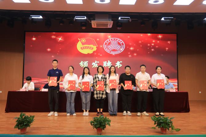 副校长张学堂向即将踏上“三下乡”征程的各实践社会实践团队授予旗帜,并寄语同学们要牢记使命、勇担重任,发扬艰苦奋斗、顽强拼搏的精神,增长才干,保质保量完成实践任务,务求实践活动取得丰硕的成果!随后,与会领导为暑期社会实践团队指导教师颁发聘书。