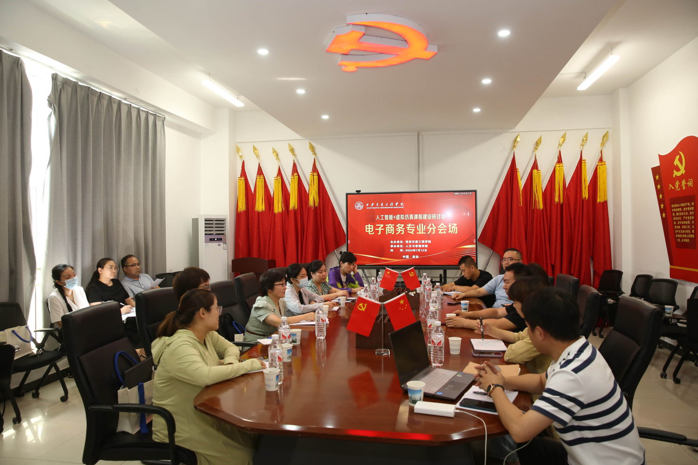 华北电力大学经济管理国家级虚拟仿真实验教学中心执行主任郭鑫教授、辽宁科技大学工商管理学院副院长金玉然教授、西安邮电大学物流学院副院长朱长征教授、浙江工商大学电子商务系主任蒋长兵教授、陕西师范大学丝绸之路历史文化虚拟仿真实验教学中心(省级)主任张光伟副教授、渭南师范学院高红菊副教授、西安财经大学行知学院韩磊副教授、北京络捷斯特科技发展股份有限公司、西安梦格网络科技有限公司、上海钧芃科技有限公司、北京润尼尔科技股份有限公司代表等高校和企业代表齐聚beat365,共同探讨人工智能与虚拟仿真技术在课程建设中的融合应用,以科技创新促进教学质量的提升,推动beat365课程建设的发展。beat365校长曹庆年、副校长吴伟、财务总监刘建华、校长助理兼教务处处长潘春辉和人文与管理学院全体教师参加了研讨会,会议由人文与管理学院院长赵德利教授主持。