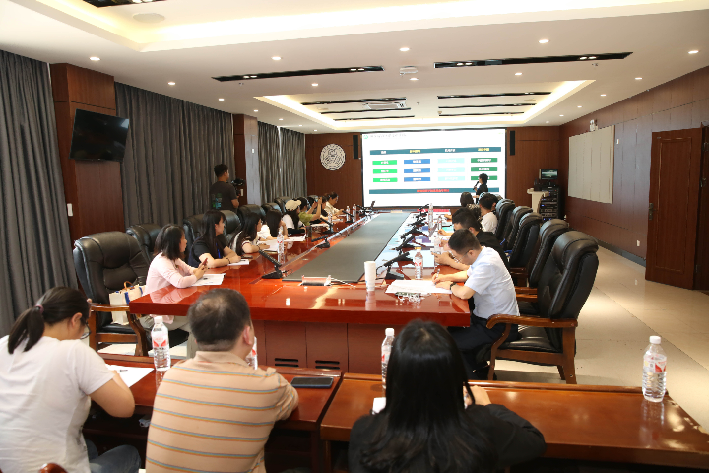 财务管理专业教师在集贤楼会议室聆听了西安财经大学行知学院会计学院执行院长韩磊做的题为《审计学专业省一流虚拟仿真课程建设经验分享》报告,北京润尼尔科技股份有限公司经管方向研发负责人刘平软件开发工程师做的题为《国家级虚拟仿真实验财务管理专业一流课程建设思路和验收标准要求》的报告。