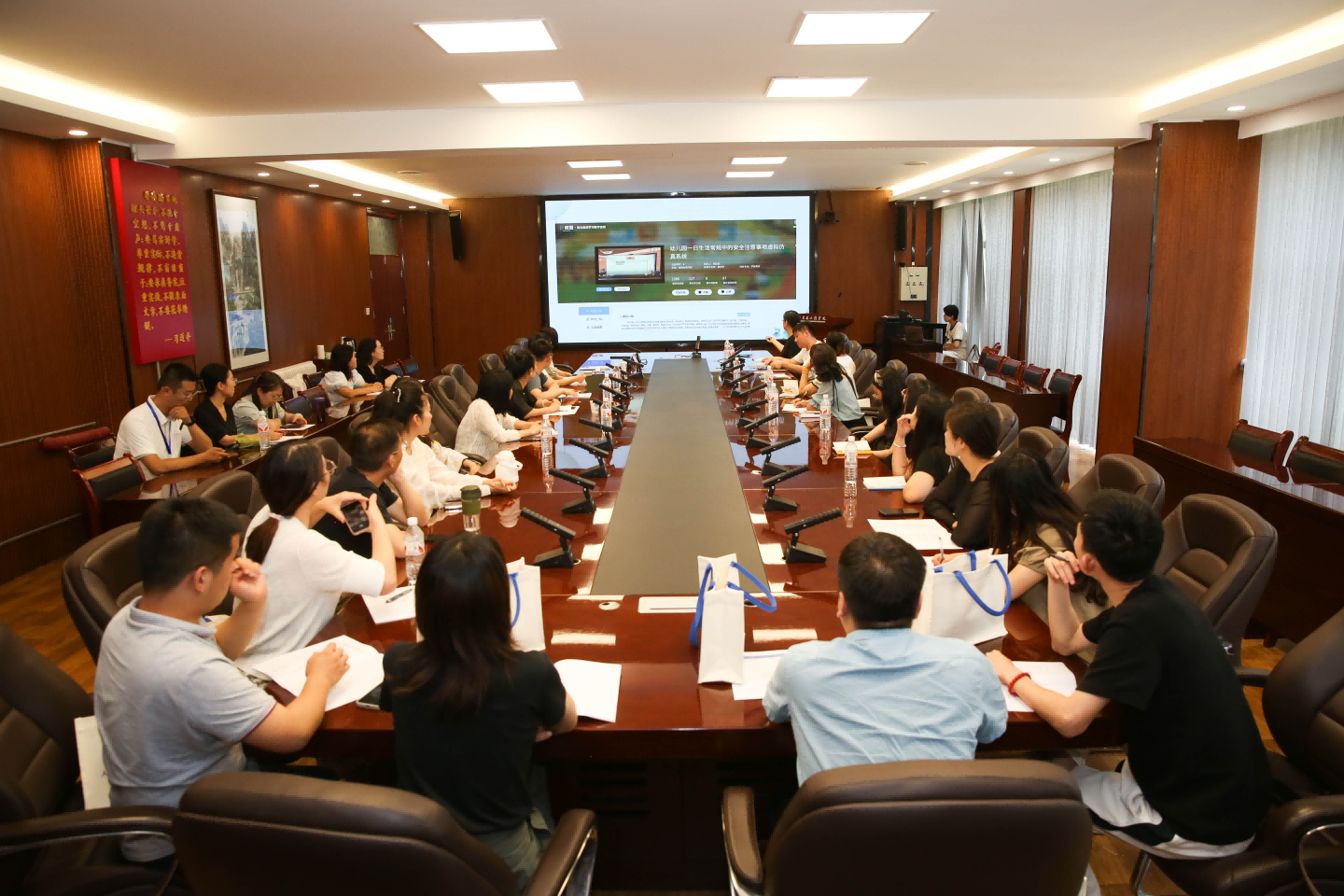 学前教育专业教师在校务楼第一会议室聆听了渭南师范学院高红菊副教授做的题为《学前教育虚拟仿真课程建设经验分享》的报告,西安梦格网络科技有限公司由伟锋经济做的题为《课程建设中虚拟仿真技术的应用分析》报告。