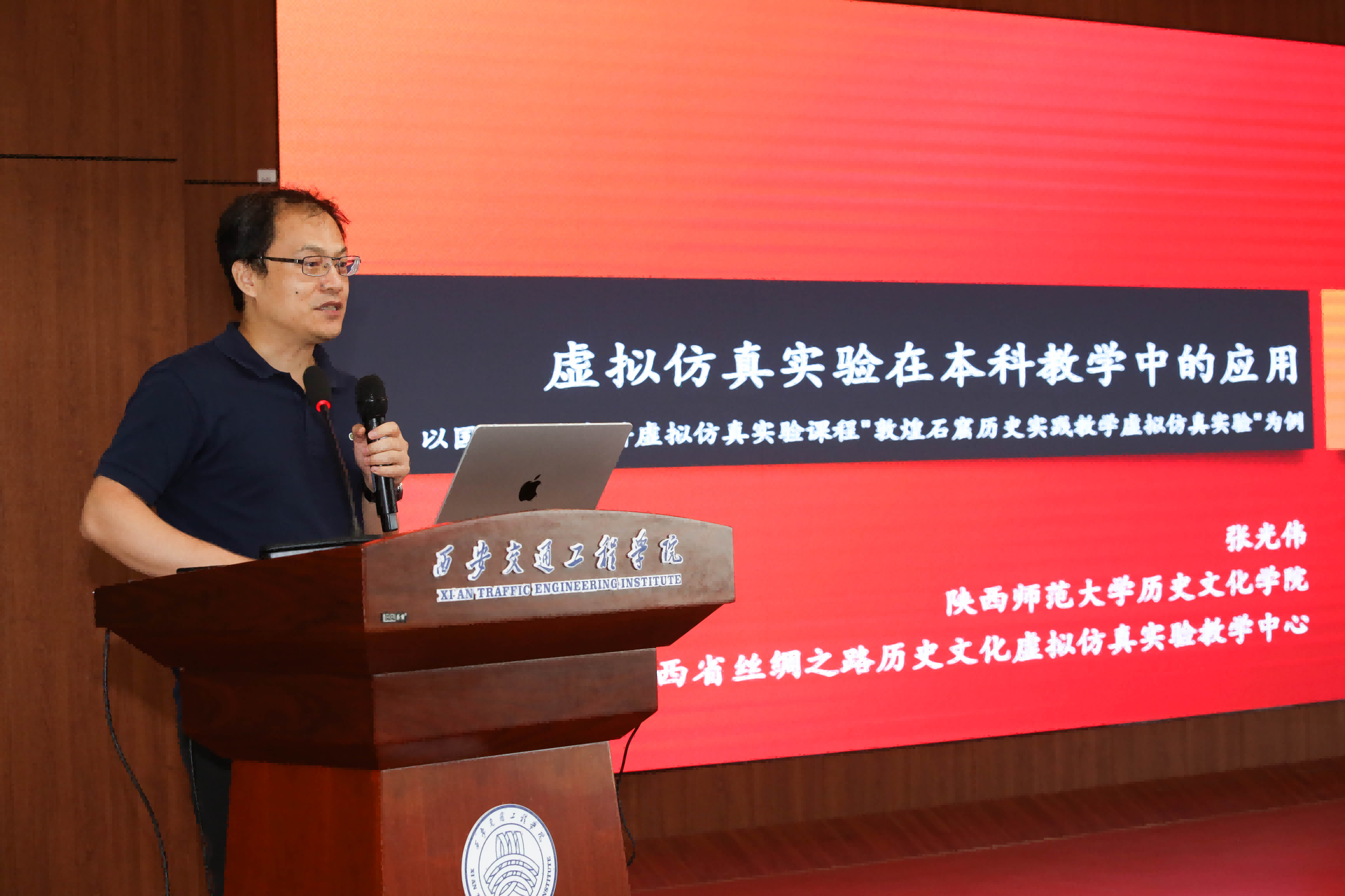 陕西师范大学历史文化学院副教授张光伟作题为《虚拟仿真实验在本科教学中的应用:以国家一流本科虚拟仿真实验课程“敦煌石窟历史实践教学虚拟仿真实验”为例》的报告