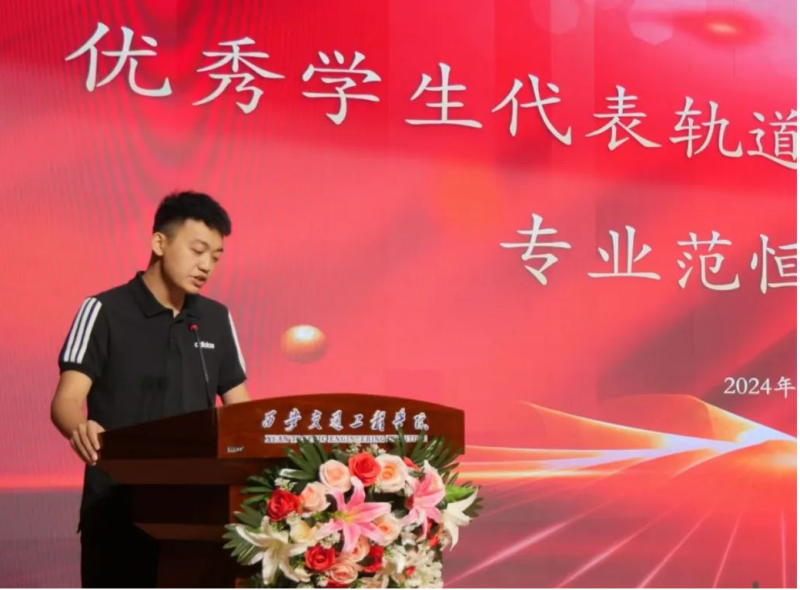轨道交通电气与控制专业范恒祯作为优秀学生代表发言,他强调大学生活意义在于全面发展,鼓励学生们参与社团、志愿服务与科研创新,丰富人生体验,增强社会责任感。也许你们可能认为四年很长,可漫长的路刚在脚下铺开,快乐的大学时光往往转瞬即逝。希望大家乘着自己的理想小舟,在充满风浪的大海中,不失航线,勇往直前!