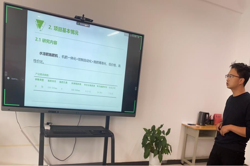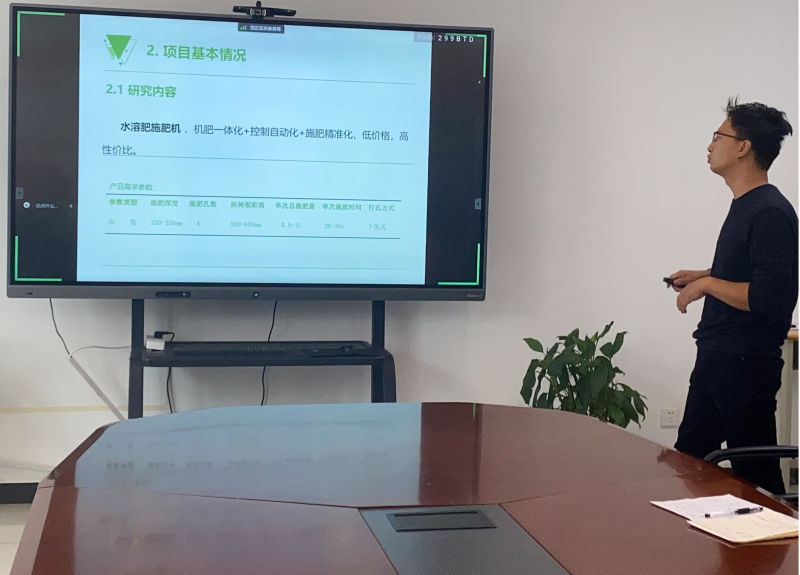 袁泽清工程师在汇报水溶肥根注喷叶机情况