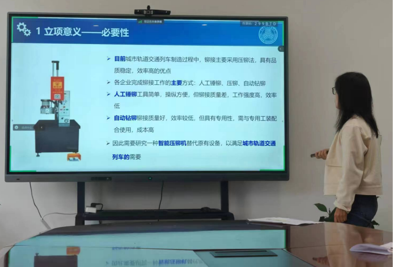 谢国坤副教授在汇报城市轨道交通列车液压压铆机情况