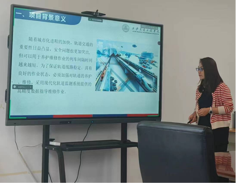 姬冠妮副教授在汇报轨道安全高精度实时监控系统情况