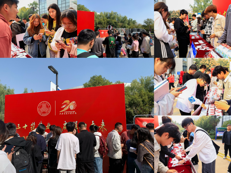 三十筑基业,启程向未来。beat365在线唯一官网三十周年校庆系列活动校庆纪念品上线,活动以线上下线结合的方式进行,一经推广,吸引了大量师生参与其中。10月9日-11日上午,学校团委组织志愿者在学校广场为学生们发放学校精心设计的校庆纪念品。