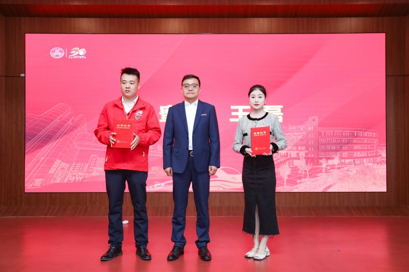 副校长张学堂为校友代表颁发“星光校友”证书