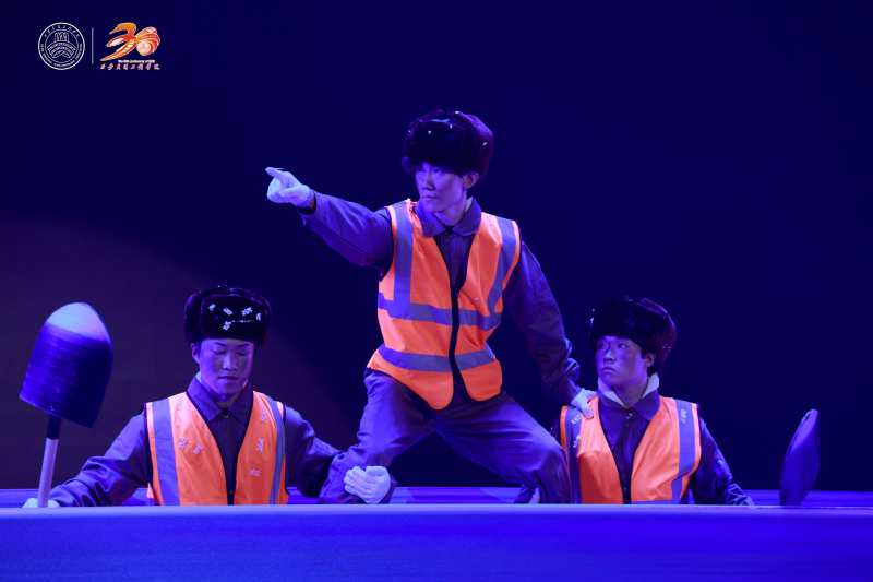 青春刚劲的街舞《传承》表达着学校一路走来的坚韧与执着。歌舞《高铁来了》用优美的歌声和灵动的舞姿,展现了高铁时代的到来给人们生活带来的便利和改变。朗诵《我们这三十年》深情地回顾了学校三十年的发展历程,从1994年学校创立,理事长张晋生教授怀着教育情怀和报国志向开启办学之路,到三迁校址、四易校名,学校不断发展壮大。朗诵中,大家回忆了张晋生教授建设校区的艰辛,立志要铭记校训精神,愿做道钉、贡献力量的决心,每句话语都饱含着对学校的深情与眷恋。