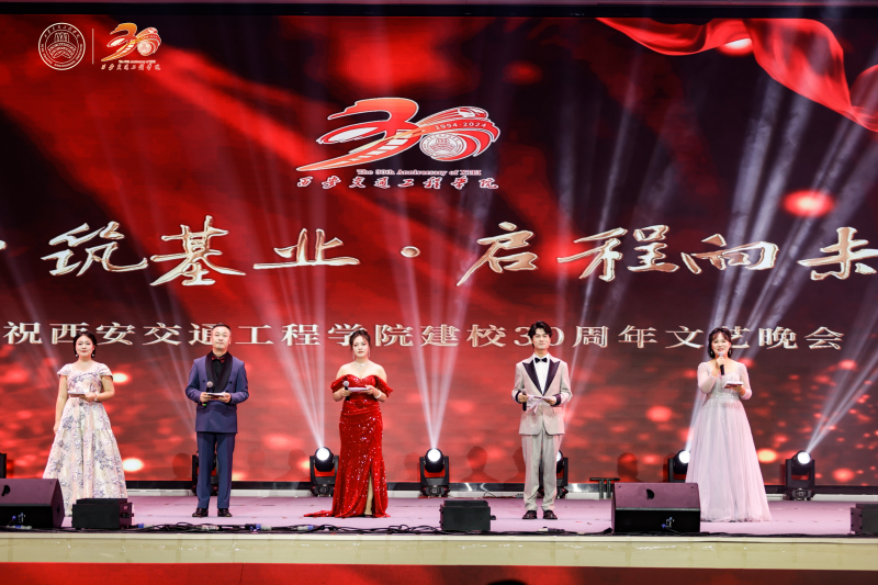 晚会以“三十筑基业,启程向未来”为主题,分为“初心 岁月峥嵘”“深耕 薪火相传”“逐梦 笃行致远”三个篇章,生动展现了学校勇立潮头、不懈奋进的青春风华和自强不息、修德载物的西交院精神。聂磊老师、2015级学生闫倩颖、2022级学生梁湘雨、段铁石、2024级学生吴旭5名师生担任主持人。