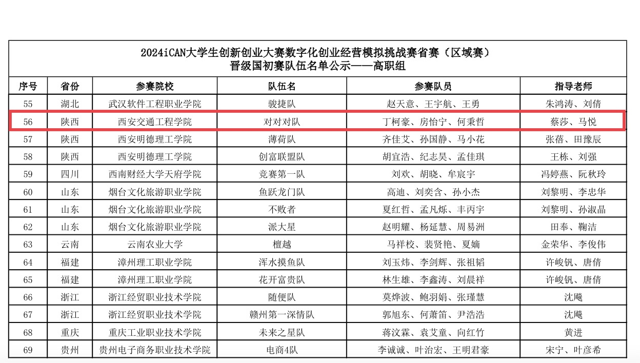 近日,由iCAN大学生创新创业大赛组织委员会主办的iCAN大学生创新创业大赛数字化创业经营模拟挑战赛,省赛(区域赛)圆满落幕。beat365由蔡莎、马悦两位老师指导的丁柯豪、房怡宁、何秉哲组成的参赛队伍荣获陕西省省赛高职组一等奖,并顺利晋级国家级决赛。