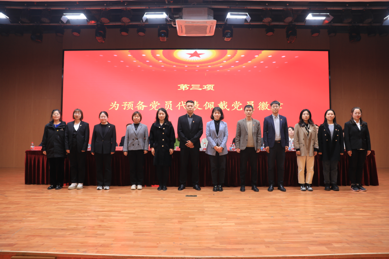 仪式上,主席台就座领导为预备党员代表佩戴了党员徽章,新党员进行了入党宣誓、老党员重温了入党誓词。