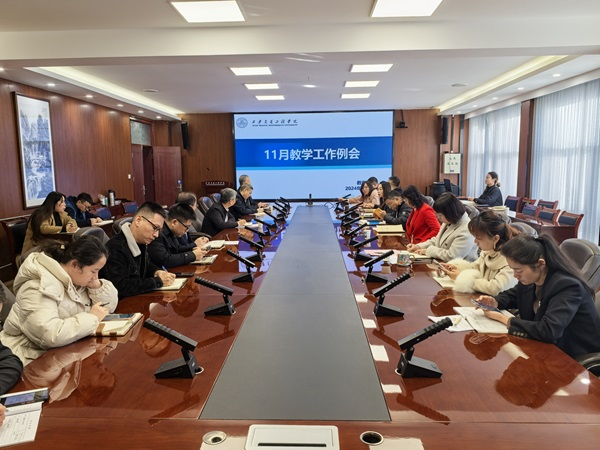 教务处副处长孙华就近期的学生注册情况、本学期开课情况、期中教学检查等工作情况进行通报,深度剖析了此次期中教学检查中存在的问题,对2021级学生学业进展情况摸底、期末考试的命题要求、考试安排及监巡考、阅卷与成绩录入等工作制定详实的推进时间表,确保各项教学运行工作按计划高效开展;教务处副处长齐军营主要从实践教学、实验室建设、毕业设计(论文)、实习实训、学科竞赛、教材建设等6个方面进行汇报。重点对即将开展的2025届本科毕业设计(论文)的推进工作、2025年实验室建设项目专家论证、省级各类学科竞赛的报名和赛前培训工作、冬季实验室安全检查工作、实习安全和学科竞赛安全外出应急预案的制定及下一学期实验耗材的征订等工作做出缜密安排;质评处副处长张小菊针对学校调课率较高现象,提出教师非必要不调课,要求各学院严格按照学校调停课制度审批办理,并通报了九至十月各学院调课情况;学生处副处长黄元元通报了学生的到课率及课堂管理、学生课堂请假审批制度、学生活动外出安全预案的制定及报备工作。
