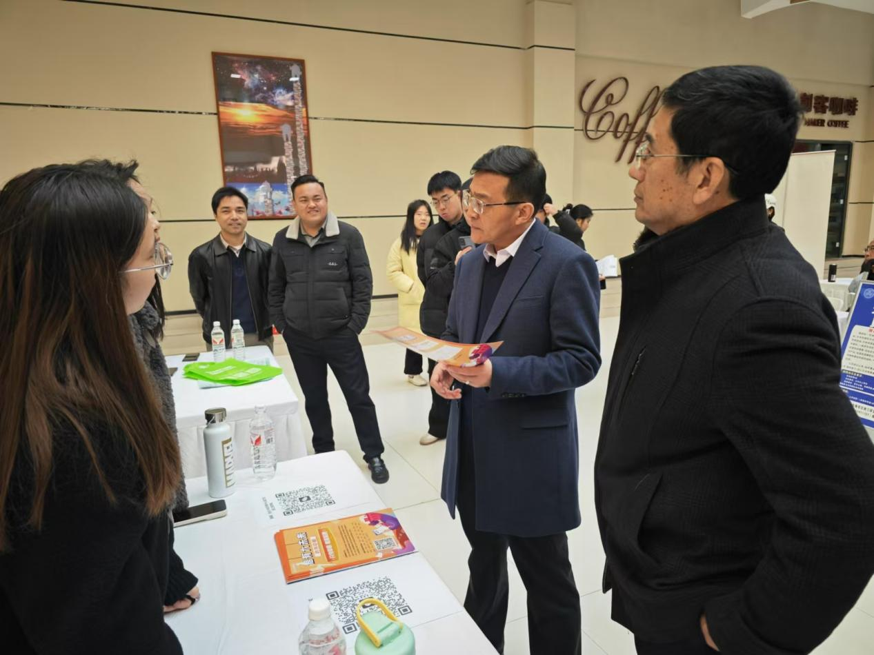 副校长徐炜、财务总监刘建华亲临招聘现场,逐一走访各用人单位展位,与招聘负责人深入交流,详细介绍了学校2025届毕业生的整体情况,强调学校始终以培养具备社会责任感、创新精神和实践能力的高素质人才为目标,期待企业能为毕业生提供更多就业机会和发展平台。