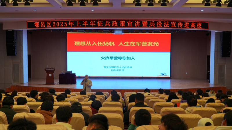 12月9日,学校举办2025年上半年的征兵政策宣讲会。旨在让同学们深入了解国家征兵政策,鼓励更多毕业生积极参军入伍,投身国防事业。副校长张学堂、学生处处长胡省利、副处长黄元元、鄠邑区武装部工作人员、毕业班辅导员、毕业班学生及意向参军学生500余人参加。