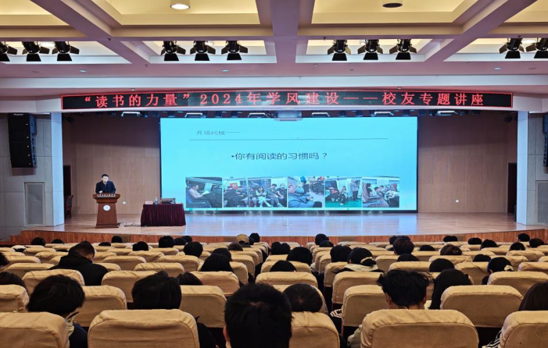 校友总会主任王拓辉介绍了本次活动的背景与目的。他表示,全民阅读已经成为一种趋势,阅读对于个人成长和社会进步的重要性愈发凸显,能够提升我们的认知能力和思考能力,增强我们的同理心和包容性,促进社会的和谐与进步。学生就业指导中心主任王丹在讲话中对王永军的返校表示热烈欢迎,并高度赞扬了其在阅读推广领域的杰出贡献。她指出,书籍是人类进步的阶梯,读书的力量是多维度的,希望同学们能够通过此次讲座,深刻认识到阅读的重要性,并积极投入到阅读中去,学榜样做表率,展现当代大学生风采。校友王永军从“阅读的好时代和坏时代”角度切入,剖析了当前阅读环境的特点与挑,分享了阅读的误区及改善阅读方式的对策,并结合生动的案例,深入浅出地介绍了多种实用的阅读方法。他强调,阅读不仅是获取知识的重要途径,更是提升个人素养、开拓视野、丰富情感的重要方式,培养良好的阅读习惯对于筛选和吸收有价值的信息至关重要,希望大家多读多悟,将阅读融入日常生活。讲座结束后,现场同学们纷纷表示收获颇丰,对阅读有了更深的认识和理解。他们认为,此次讲座不仅让他们学会了如何更有效地阅读,更重要的是激发了他们对阅读的热爱和追求。未来,他们将把所学到的知识和方法应用到实际生活中,不断提升自己的阅读能力和综合素质。