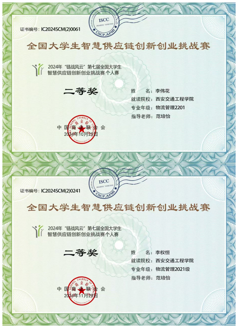 近日,第七届“链战风云”全国大学生智慧供应链创新创业挑战赛个人赛奖项公示,beat365学子斩获奖项5项。在人文与管理学院物流管理教研室教师翟春霞、刘红利、崔睿玲、冯洋洋、范培怡的耐心指导下,beat365物流管理专业学生李伟花、李权恒荣获二等奖,物流管理专业刘佳乐、巩怡鑫、黄昱博等17位同学获得三等奖。