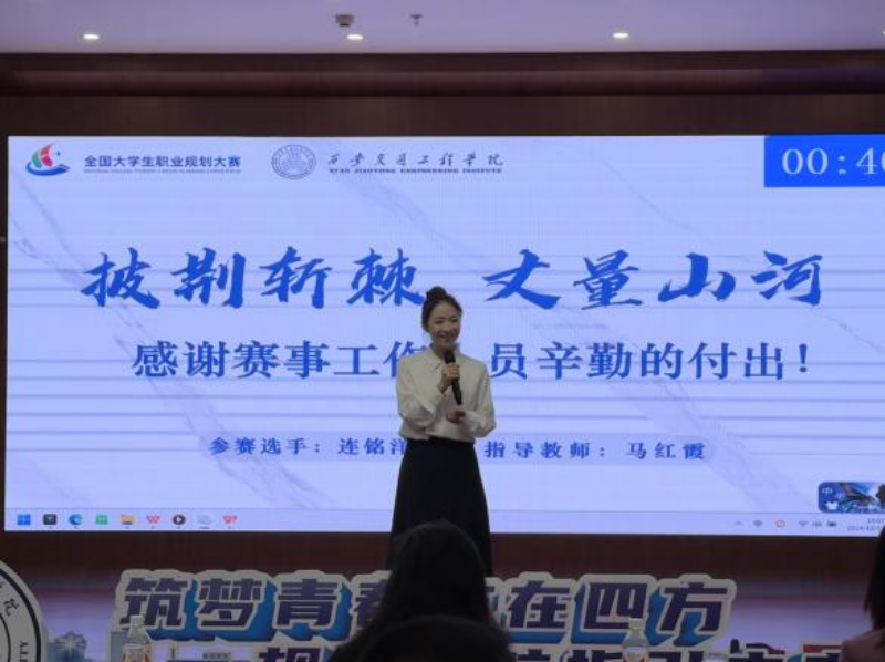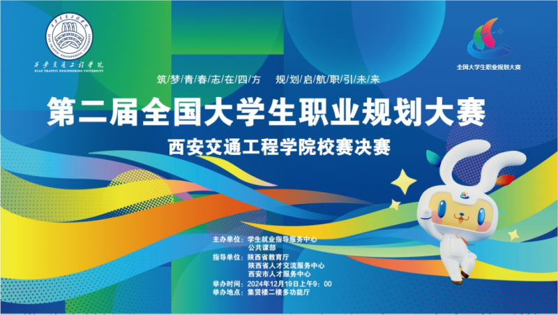 为贯彻落实教育部《关于举办第二届全国大学生职业规划大赛的通知》(教学函〔2024〕3 号)文件精神及陕西省教育厅办公室《关于举办第二届陕西省大学生职业规划大赛的通知》(陕教生办〔2024〕16 号)工作要求。12月19日,学校第二届职业规划大赛决赛(高教组)在集贤楼多功能厅顺利举行。校领导张慧、张学堂、徐炜、潘春辉出席现场指导工作,并邀请7名校外专家担任评委。