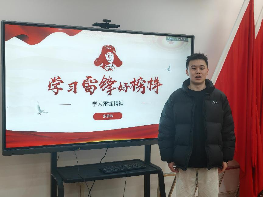 在学院内,学生第一党支部举办了主题为“学习雷锋好榜样”的党课,拉开了新时代雷锋精神传承的序幕。党课从雷锋的生平事迹讲起,深入剖析了雷锋精神的核心——“全心全意为人民服务”。张展浩以“现代雷锋一家”的无私奉献与“最美妈妈”的顽强坚守诠释着新时代雷锋精神的传承和弘扬。他认为,雷锋精神将会是一代代青年始终不渝的奋斗动力。正如雷锋自己所言:“人的生命是有限的,可为人民服务是无限的。”