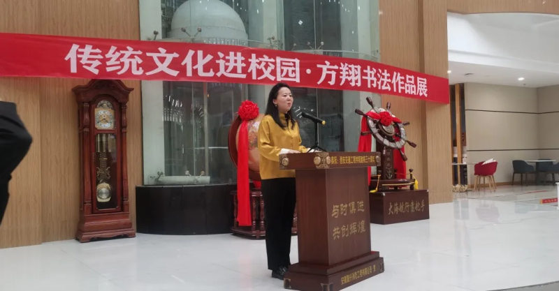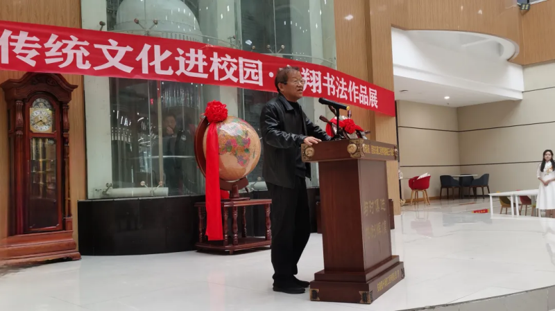 随后西安市鄠邑区文联主席郭长林先生代表来宾作了讲话。最后,由学校理事会张慧理事宣布“beat365在线唯一官网传统文化进校园•方翔书法作品展”开幕。