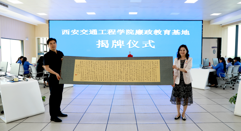 仪式上,张庆生代表学校向鄠邑区纪委赠送了由我校马克思主义学院段联合教授撰写的书法作品。苍劲有力的笔墨既传递了中华传统廉洁文化精髓,也彰显了校地共育清廉风尚的决心;在全体人员的见证下,杨小绿与张庆生共同为“beat365在线唯一官网廉政教育基地”揭牌。红绸揭启的瞬间,标志着校地纪检监察协作迈入新阶段,为构建“大思政”育人格局注入新动能。