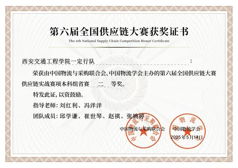 各参赛小组在专业教师的精心指导下,系统地梳理了供应链管理的理论知识,并通过模拟实战不断优化方案。在比赛中,他们灵活运用大数据分析等工具,结合赛事背景信息与现实情况,高效制定了供应链协同策略。最终凭借稳健的运营能力和创新的解决思维,成功赢得比赛,为学院再添殊荣。此次获奖是学院深化产教融合、推进“以赛促学、以赛促教”育人模式的生动体现。不仅彰显了人文与管理学院物流管理教研室的专业教学实力,也为进一步推动学科建设、提升学生创新能力注入新动力。
